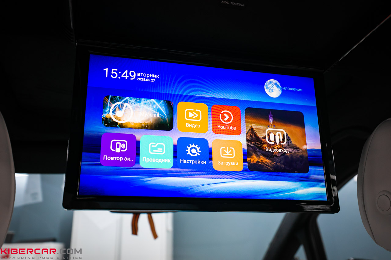 GAC M8 – полноценный минивэн для большой семьи или коммерческого использования. У него целых 7 посадочных мест, одно водительское и 6 пассажирских. Чтобы такой большой компании было не скучно в дороге, нужно продумать, чем именно ее развлечь. Для этой цели отлично подходит потолочный монитор на базе ОС Android.