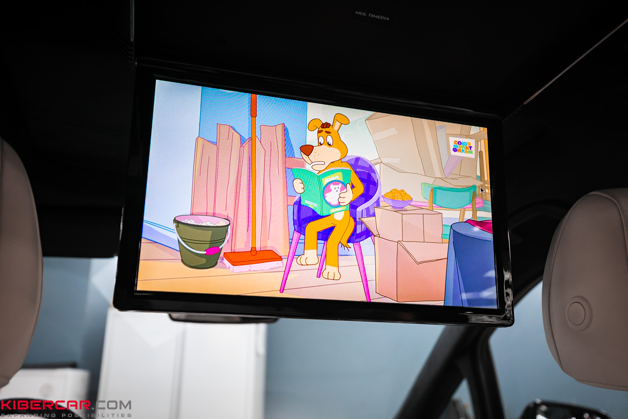 Мониторы для пассажиров устанавливаются разными способами: на потолок, в изголовье, на спинки сидений. Но если нужно установить один монитор на всех пассажиров, то нужен потолочный. Его можно разместить так, что удобно будет всем.