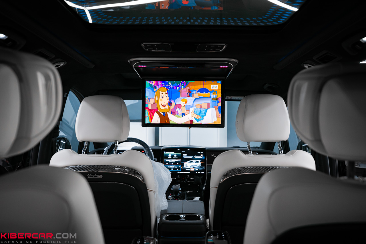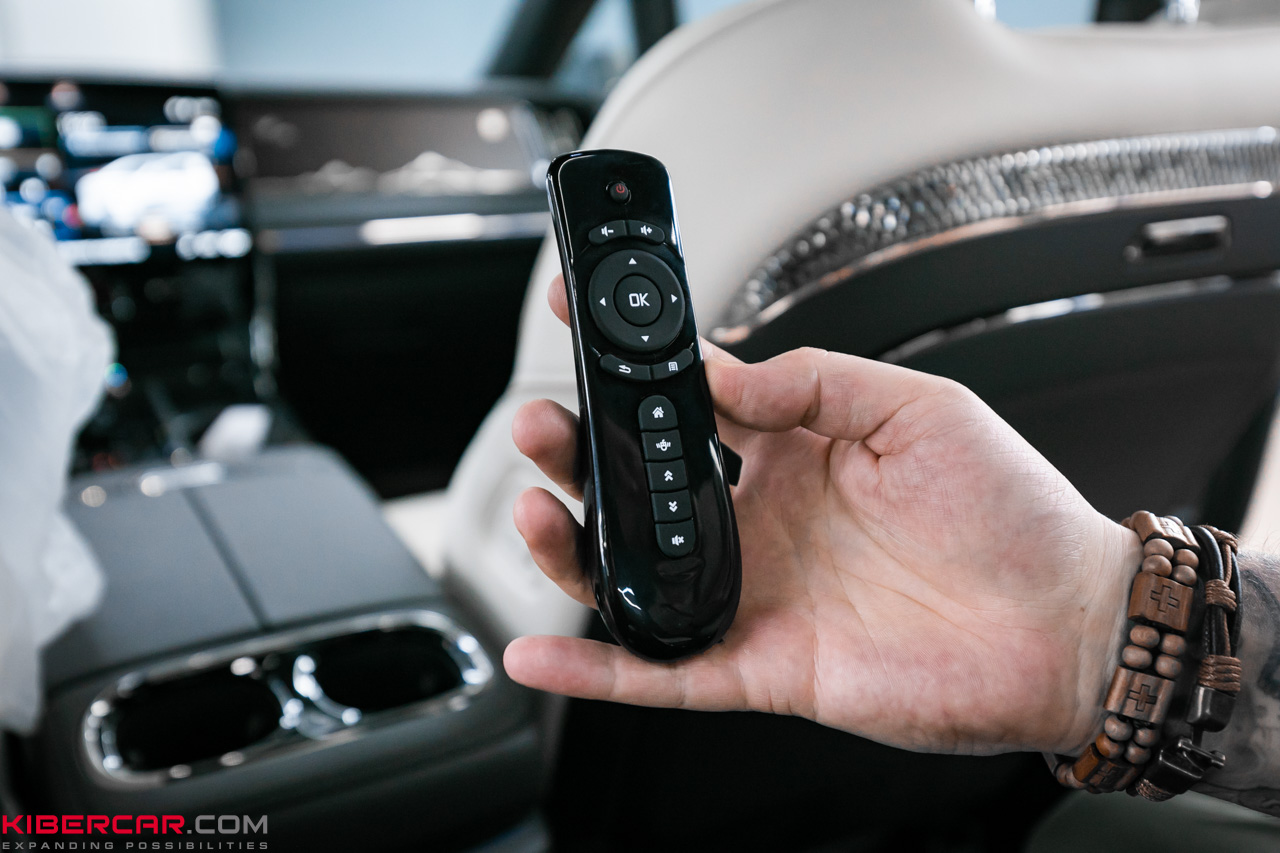 Владелец выбрал монитор с диагональю 17 дюймов. Для GAC M8 он подошел идеально: места оказалось достаточно. Управление осуществляется при помощи небольшого пульта, который идет в комплекте. Монитор оборудован подсветкой, так что его будет прекрасно видно в любое время. При желании мы также можем установить дополнительную амбиентную подсветку салона или, например, в виде звездного неба.