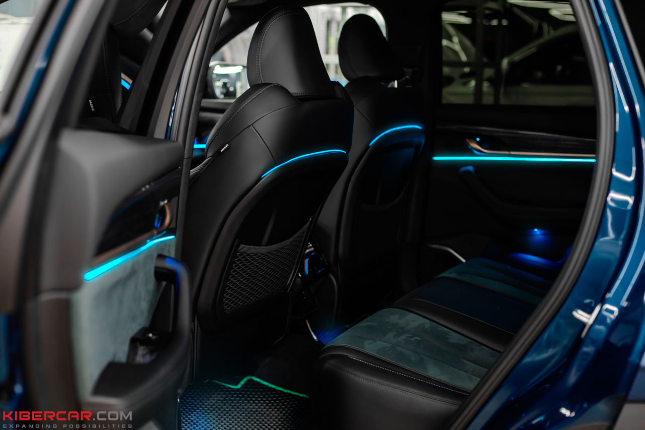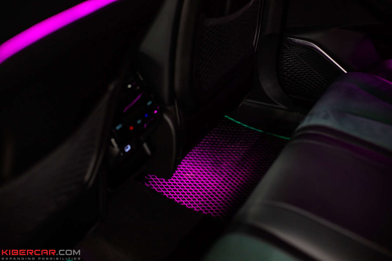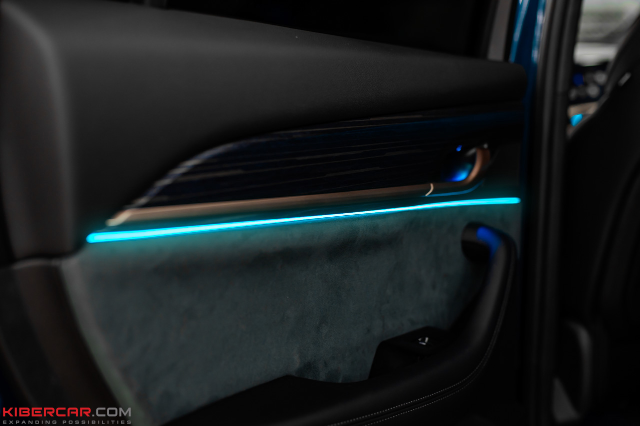 Атмосферная подсветка выполняется при помощи тонких акриловых нитей. Они устанавливаются в штатные зазоры: каждая нить — не более 1 мм толщиной. В выключенном состоянии подсветка не привлекает внимания, зато вечером кардинально преображает интерьер салона: он выглядит ультрасовременным.
