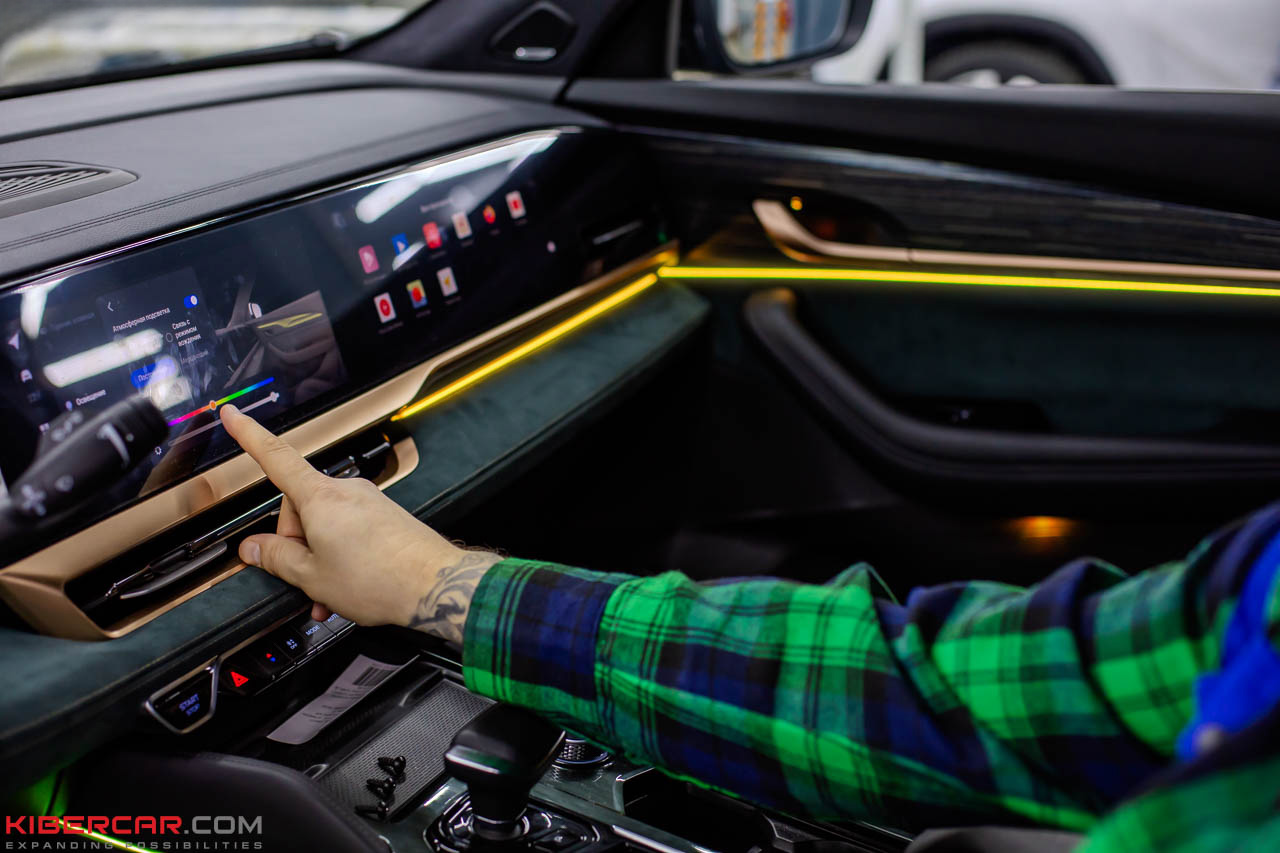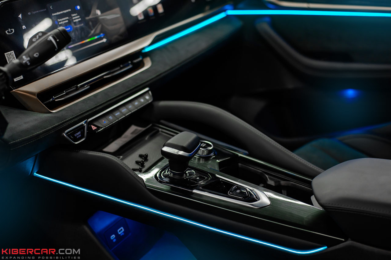К нам поступил запрос от владельца Geely Monjaro на комплексный тюнинг: оклейку автомобиля цветной пленкой, установку подогрева руля и атмосферной подсветки. О подсветке решили рассказать подробнее, так как недавно эта опция была доработана и улучшена.