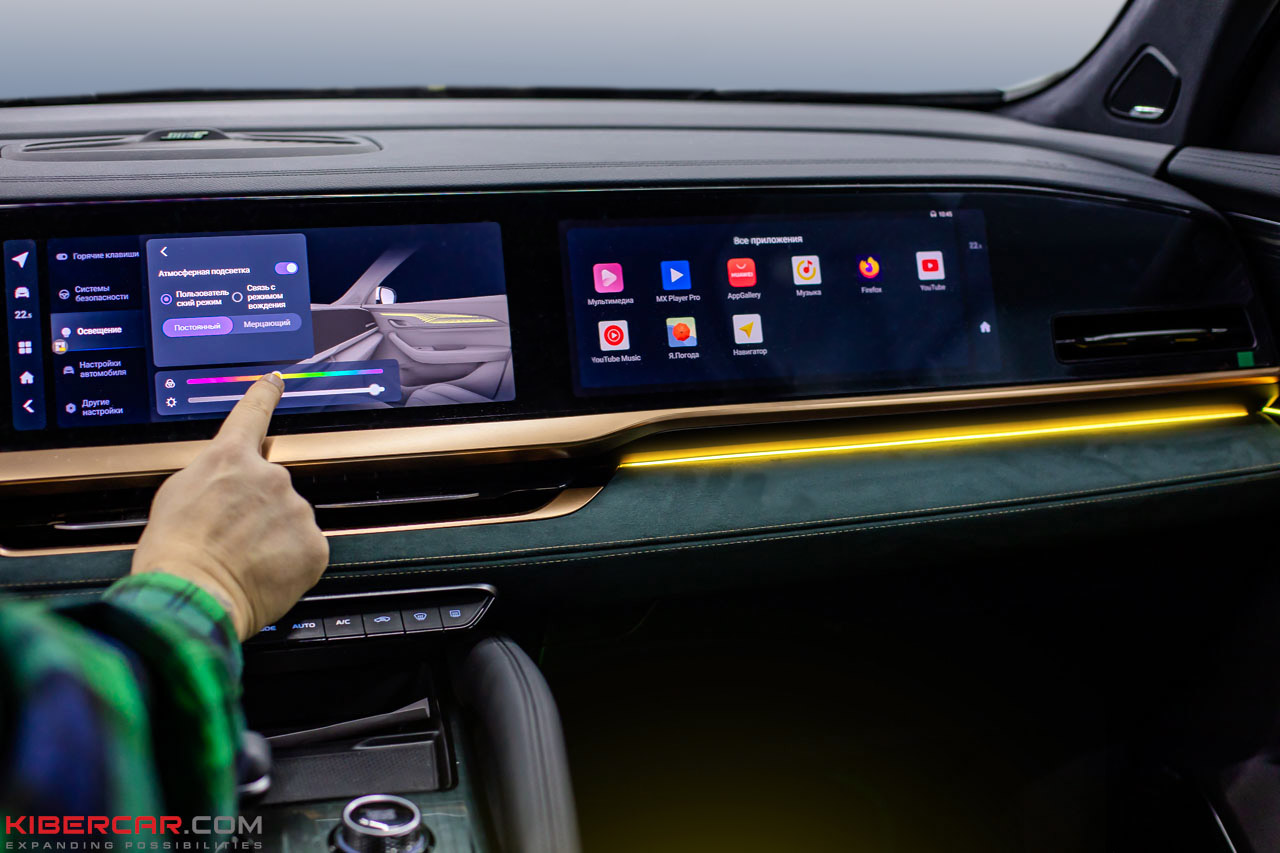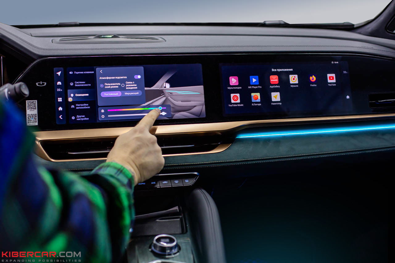 Главное нововведение состоит в том, что теперь управлять работой подсветки можно с головного устройства (штатного монитора). Водитель может менять цвет (всего доступно 255 оттенков), яркость и другие параметры. Если раньше для этого использовалось мобильное приложение, то сейчас достаточно нажать пару кнопок на мониторе.