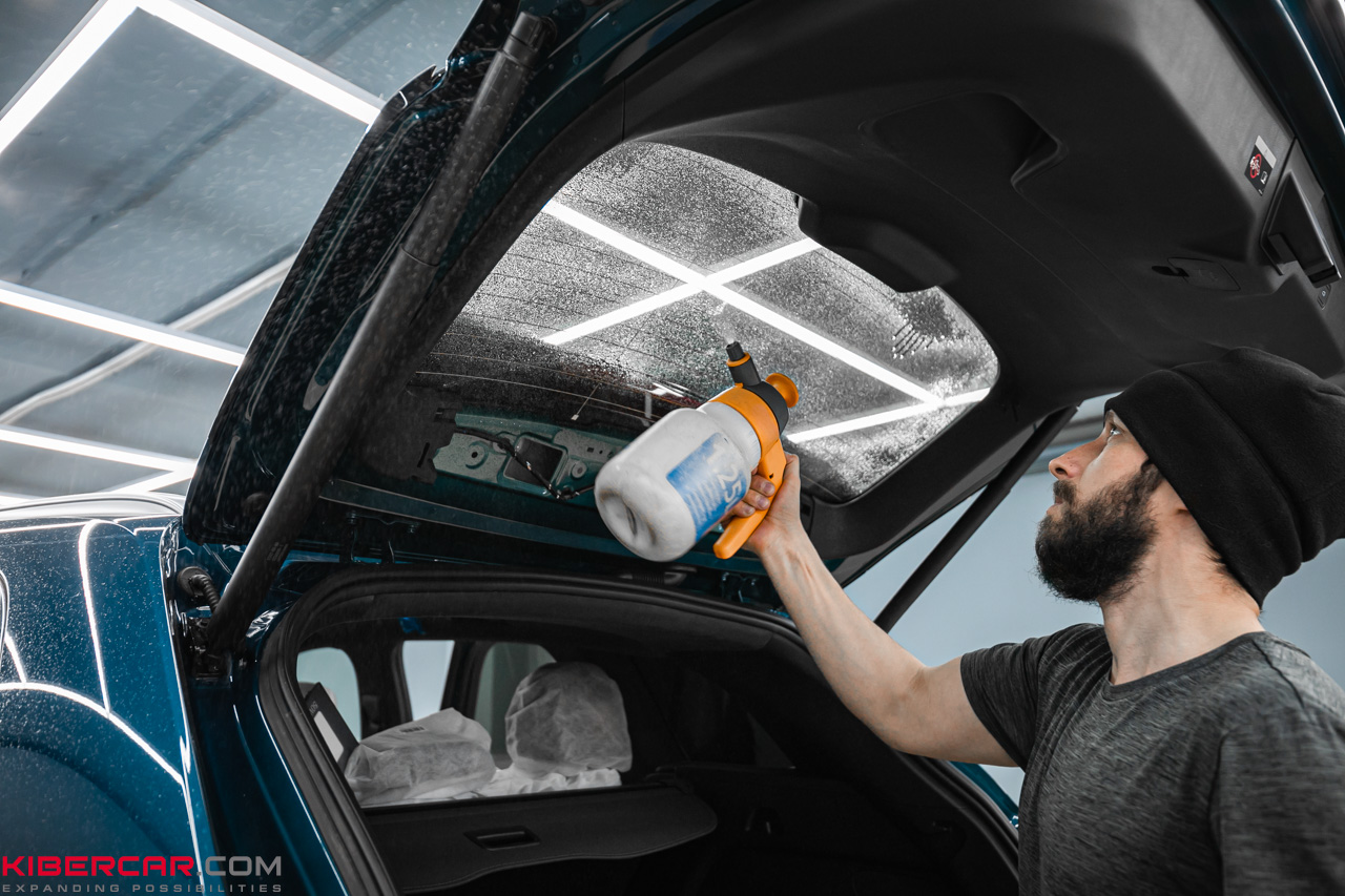 Водитель оставил нам машину после подписания договора, и команда приступила к работе. Первым делом мы хорошенько вымыли стекла: на них не должно оставаться ни пылинки! Даже мельчайший, не заметный невооруженным глазом мусор может повлиять на процесс оклейки.
