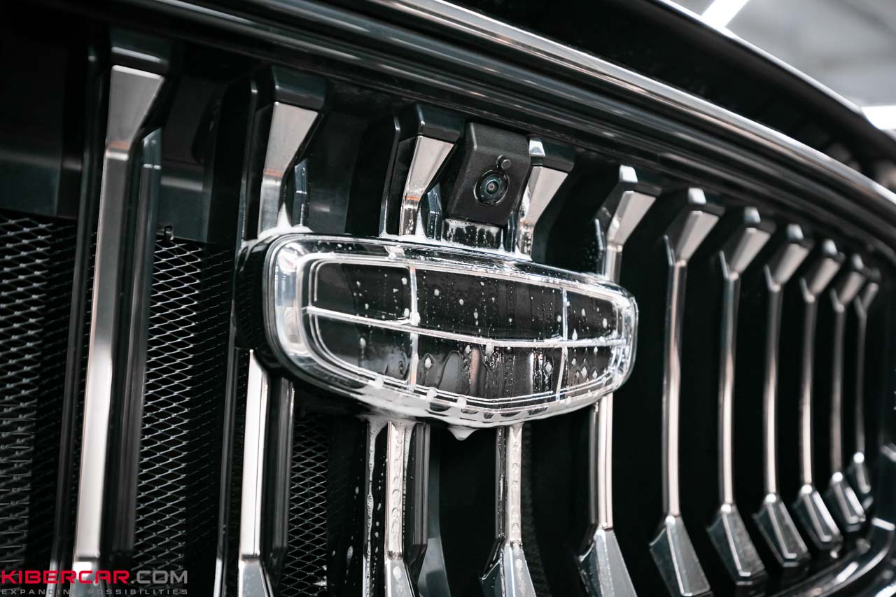 В установочном центре мы изготовили новый корпус с применением аддитивных технологий. Он почти не отличается от старого, но позволяет разместить омыватель. Если внимательно присмотреться к бамперу Geely Monjaro, то возле камеры заметна форсунка, откуда жидкость омывает камеру.