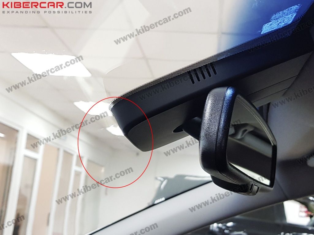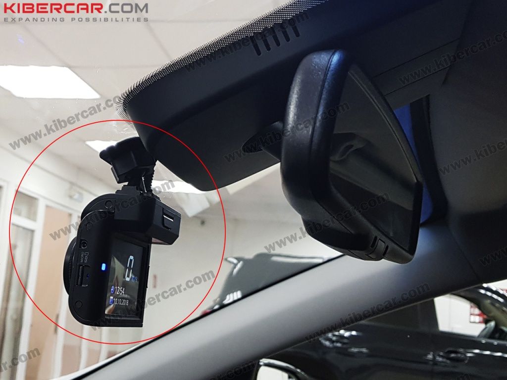 Видеорегистратор устанавливаем в салон за зеркалом заднего вида.