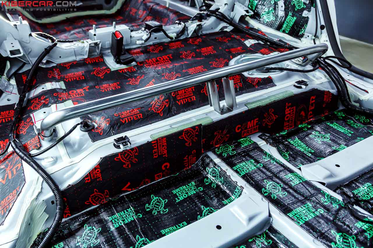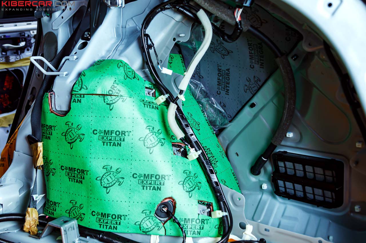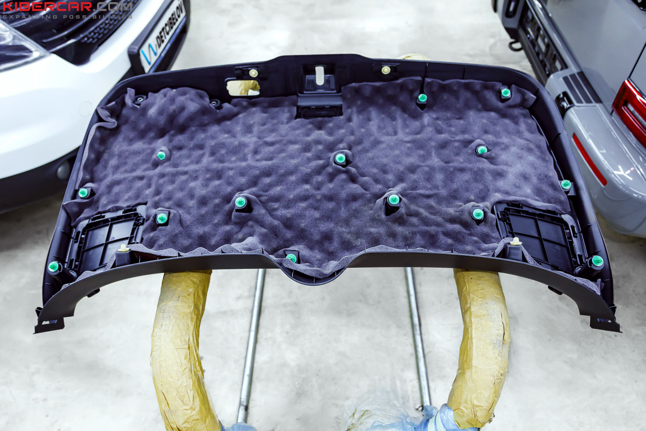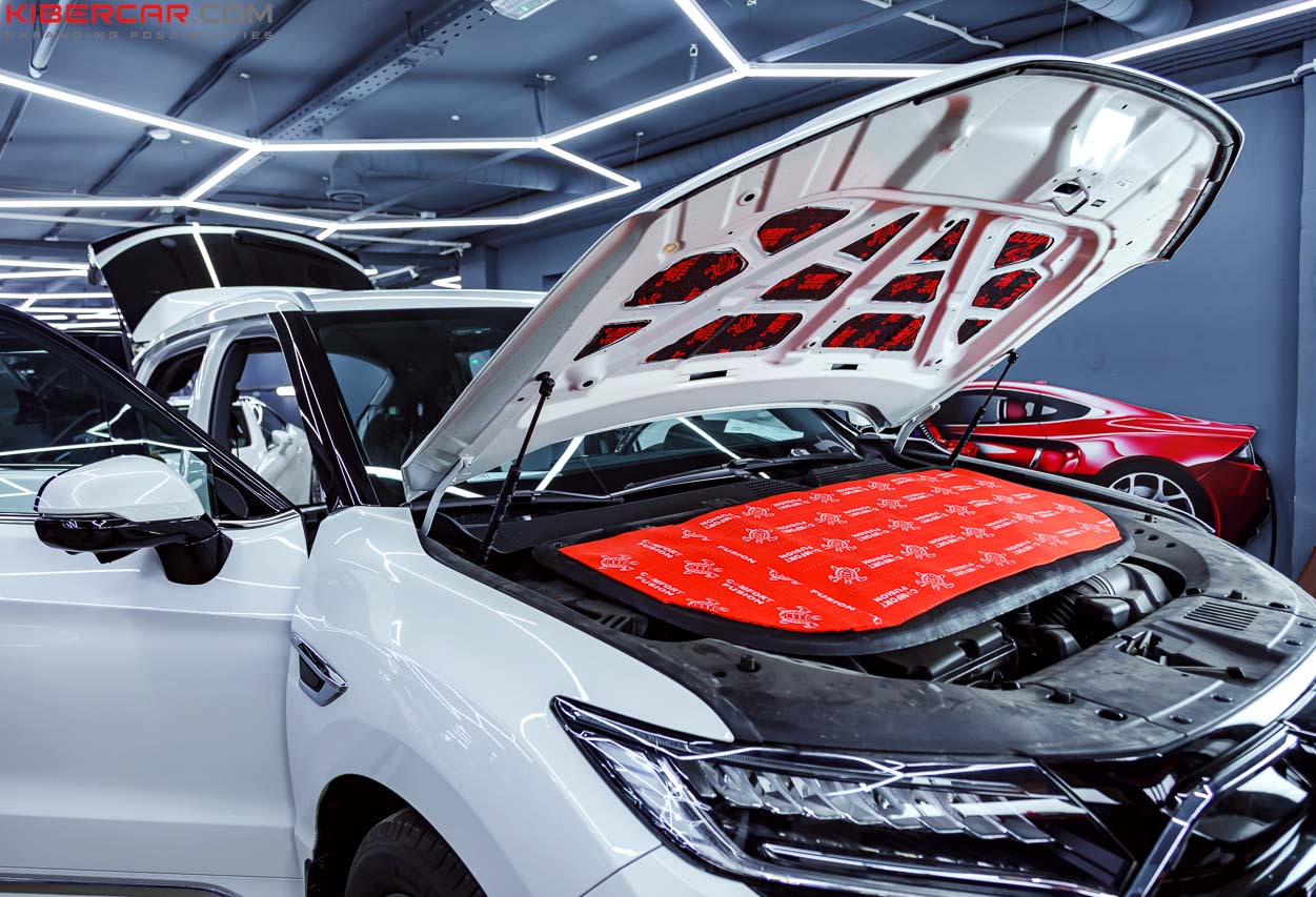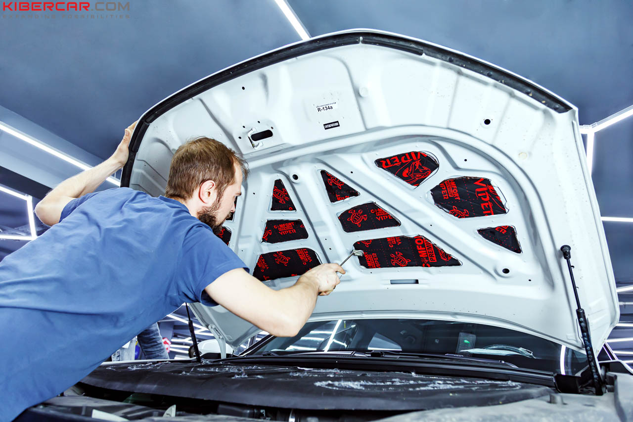 Оклейка шумоизоляцией предусматривает работу с дверными картами, полом салона и багажника, не упускается из внимания крышка багажника и капот, а также колесные арки изнутри. Для каждого участка предусмотрены свои материалы, учитывающие особенности конкретной области обработки.