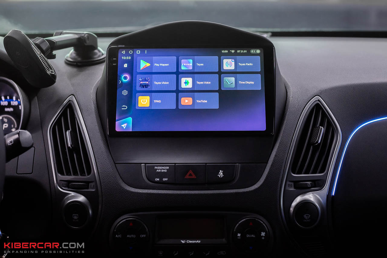 На днях в наш центр переехал Hyundai ix35. Владелец проводил комплексное дооснащение, о некоторых аспектах которого вам и расскажем. Так как в автомобиле не было удобного и функционального головного устройства, было решено установить ГУ от Teyes. Оно выглядит как большинство современных планшетов. Ключевая задача – подобрать рамку для установки, которая бы соответствовала конкретной модели машины. В нашем центре такая рамка нашлась.