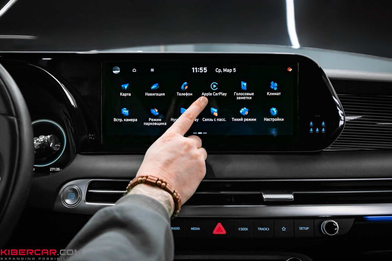 В Hyundai Palisade, владелец которого обратился к нам на днях, штатный Carplay был. И это позволило организовать потоковую передачу Android с минимальными усилиями. Мы установили Q-LINK – небольшой блок, который обеспечивает реализацию этой технологии без масштабных изменений и доработок комплектации автомобиля. Его можно разместить на видном месте или спрятать: устройство имеет небольшие размеры, так что любой вариант приемлем.