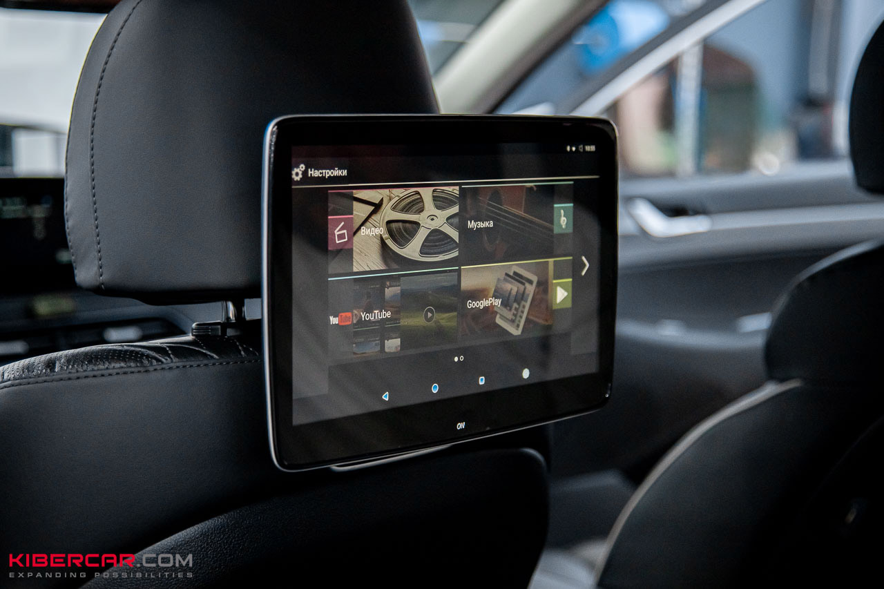 Для Hyundai Palisade оптимальными оказались съемные пассажирские мониторы диаметром 12 дюймов, работающие на базе ОС Android. Внешне они почти не отличаются от планшетов, разве что тыльная часть более выпуклая. Такой монитор имеет сенсорный экран, что позволяет не только смотреть видео, но и, например, играть в несложные игры во время поездки.