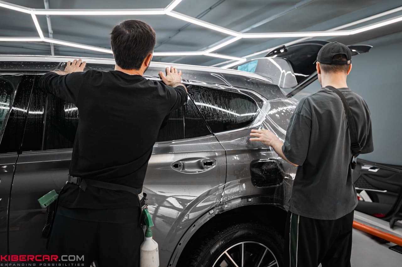 Прежде чем нанести пленку на кузовные детали, наши мастера провели тщательную очистку, чтобы убрать имеющиеся загрязнения и жирные пятна. Такая подготовка поверхности обеспечивает качественное прилегание пленки. Далее были демонтированы элементы, которые мешают нанесению покрытия. При оклейке особенное внимание уделяется технологии оклейки и проработке наиболее проблемных мест. Это позволяет предоставлять владельцам автомобилей гарантию на продолжительный срок. После оклейки в нашем установочном центре пленка не пойдет пузырями, не будет отслаиваться в уголках.