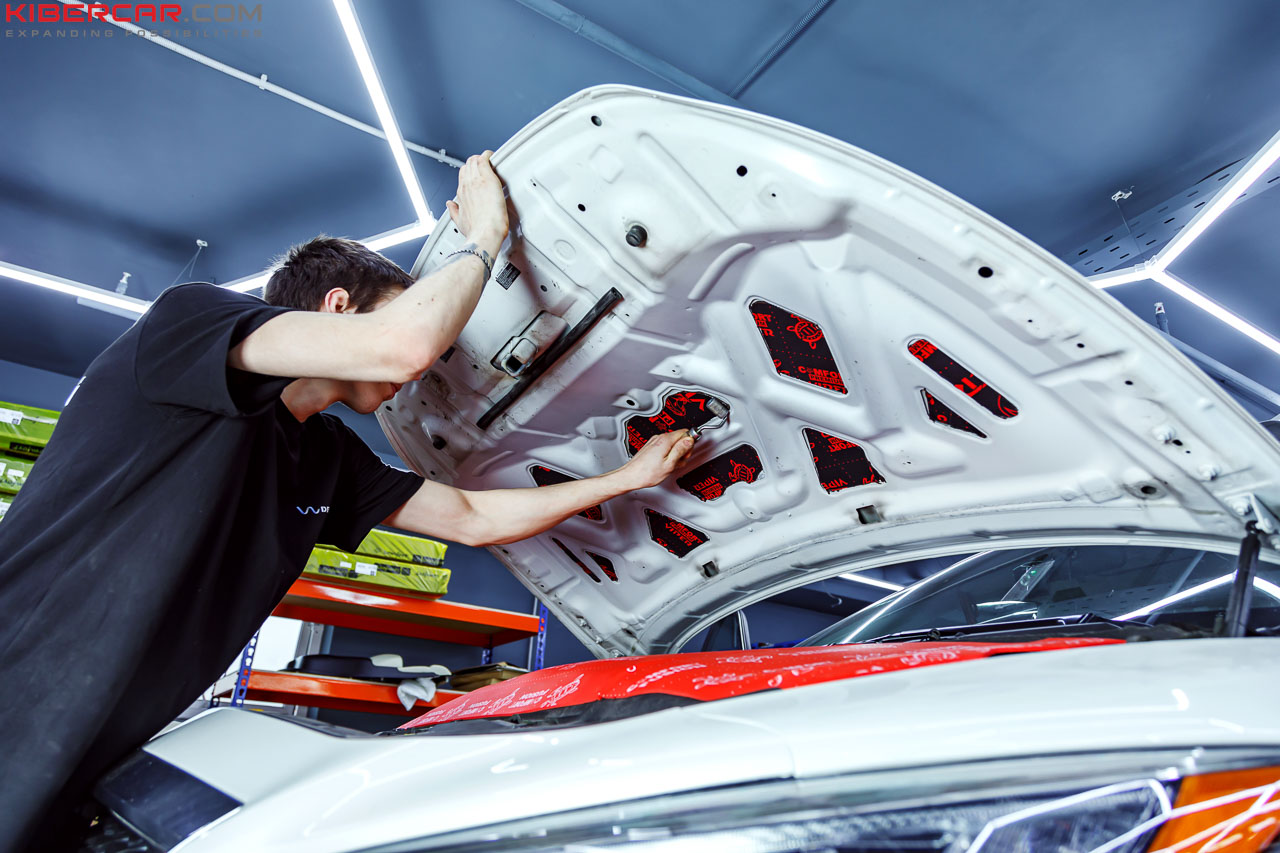 В ходе проведения работ обесшумили двери, потолок, пол, внутренние арки, капот. Работа заняла менее 16 часов. Материалы уложили максимально аккуратно, не повредив обшивку и крепежные элементы. Со стороны и не видно, чтобы производилось какое-то вмешательство.