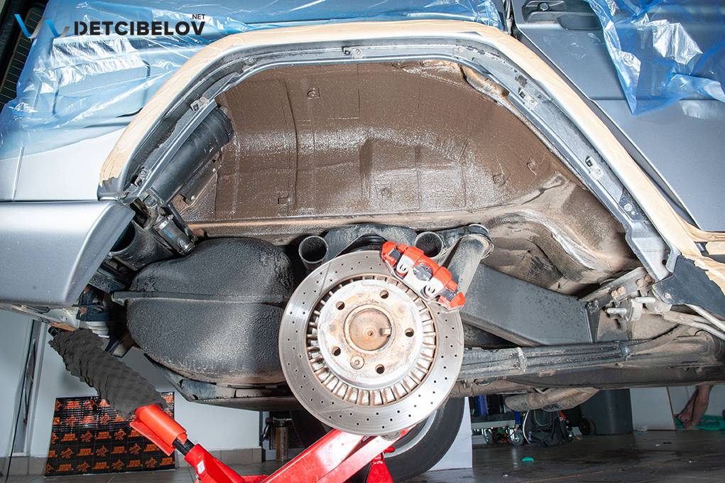 Его мы используем на полу и на задних колесных арках. В багажном пространстве пол и крылья покрываем материалом Comfort mat Dark D3.
