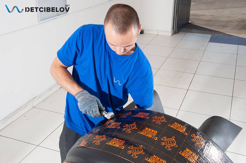 Технология нанесения, это не только последовательность нанесения слоев вибро- и шумо- изоляционных материалов, но и качество их нанесения. Если сделать неправильный монтаж: пропустить важные места, наклеить с зазорами и так далее – можно получить совсем не тот результат, отличающийся в несколько децибел в сравнении с правильным монтажем материалов. Вроде бы и материалы одни и те же и кол-во слоев одинаковое, но результат может быть совершенно разный. Поэтому определяющими факторами должны быть не только материалы и количество слоев, но «прямые руки» специалистов.