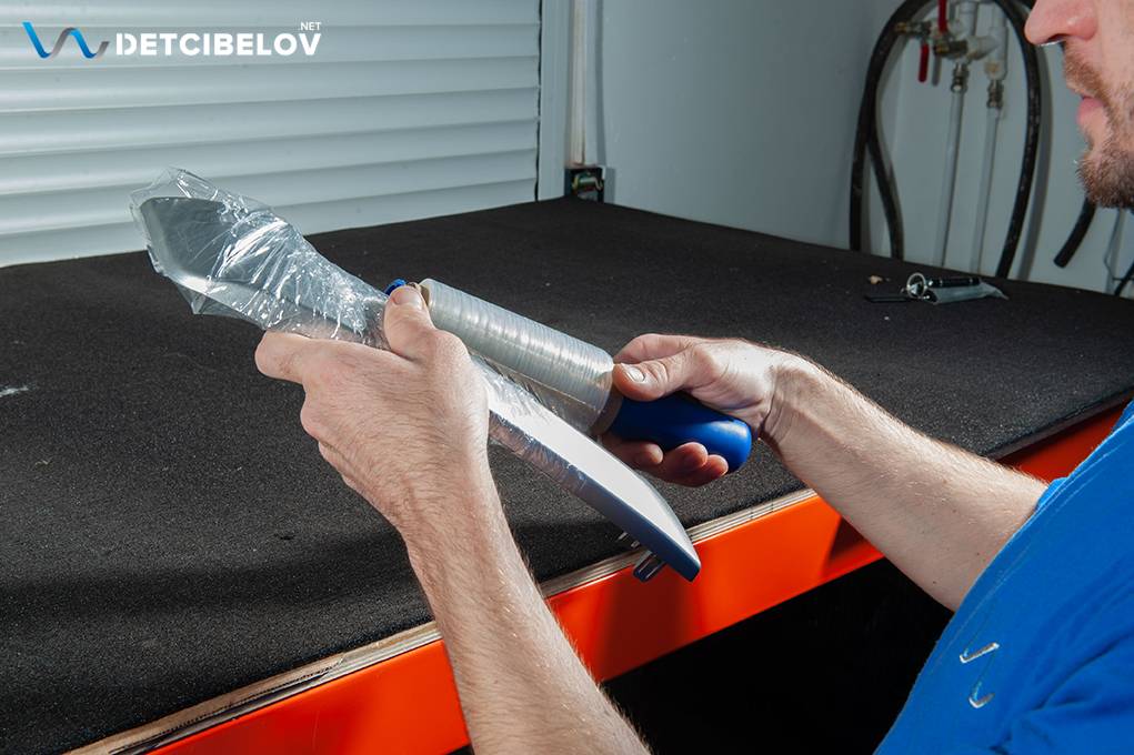 Первым делом максимально защищаем автомобиль: оклеиваем пленкой все внешние элементы автомобиля, затем наносим скот на пороги и арки дверей, упаковываем все мелкие пластиковые элементы в стретч-пленку. Сиденья и карты дверей помещаем в специальные чехлы.
