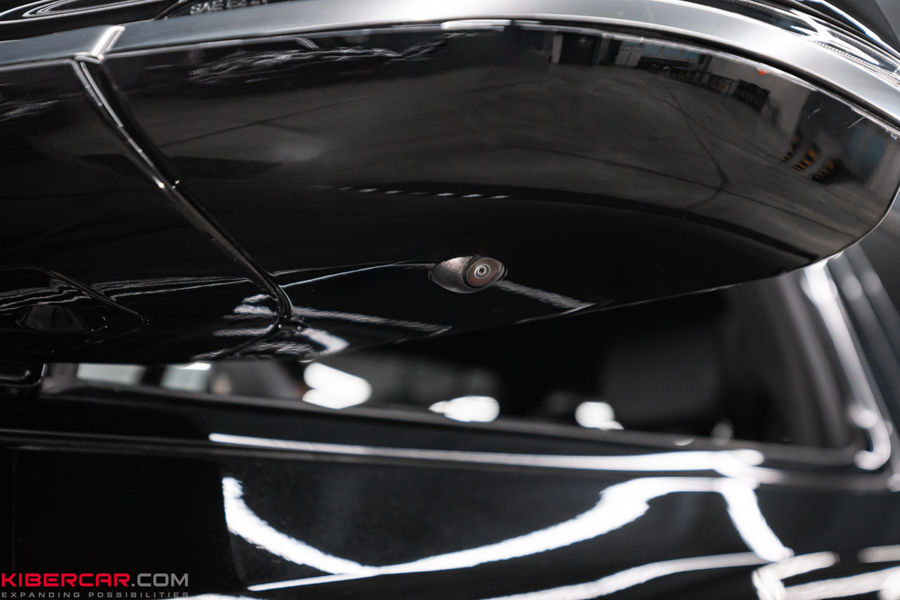 На решетке радиатора мы установили камеру переднего вида и остастили ее омывателем, подключенным к системе очистки лобового стекла. Боковые камеры монтировали на зеркалах автомобиля – так, чтобы они оптимально вписались в экстерьер. Вместо штатной задней камеры установили новую модель от Parklogix. Она также оснащается омывателем.