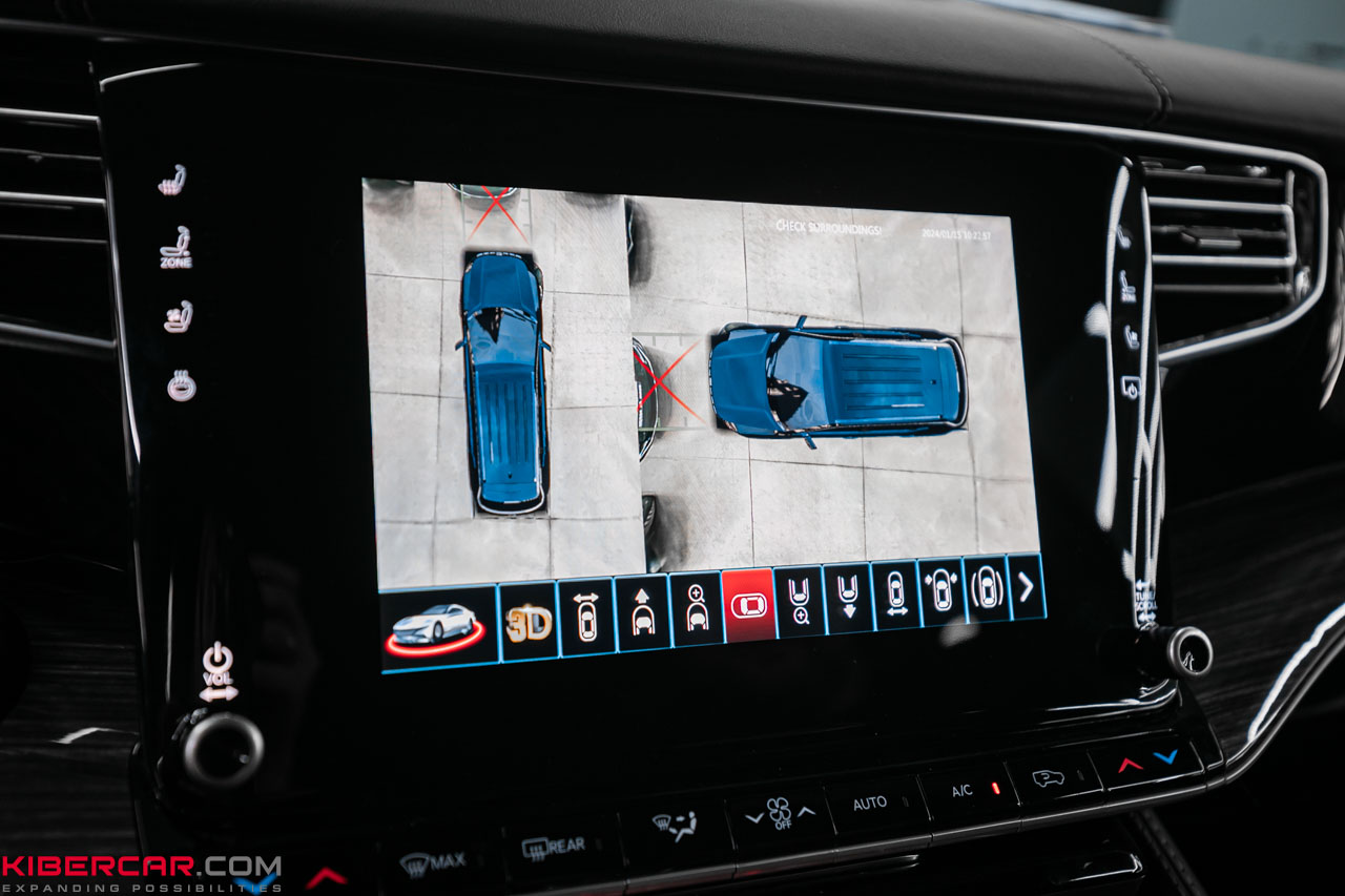 Одна из самых популярных услуг в нашем установочном центре – монтаж систем кругового обзора, предназначенных для повышения безопасности и контроля за движением. Именно такое дооснащение появилось на Jeep Wagoneer 2023 года выпуска. Теперь следить за ситуацией на все 360° водителю помогают четыре камеры, объединенные одним блоком управления.