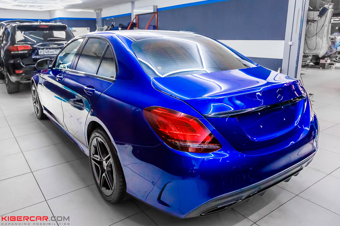 Наши мастера выполнили качественный детейлинг автомобиля Mercedes-Benz C-Класс 2020 года выпуска. Владельцу хотелось, чтобы машина выделялась на фоне других, и было решено перекрасить хромированные детали в стильный черный. Антихром придал авто более брутальные черты. Блестящие в прошлом элементы стали черными – молдинги, решетка радиатора, диски. Кроме того, для усиления эффекта были добавлены красные суппорта с фирменным логотипом.