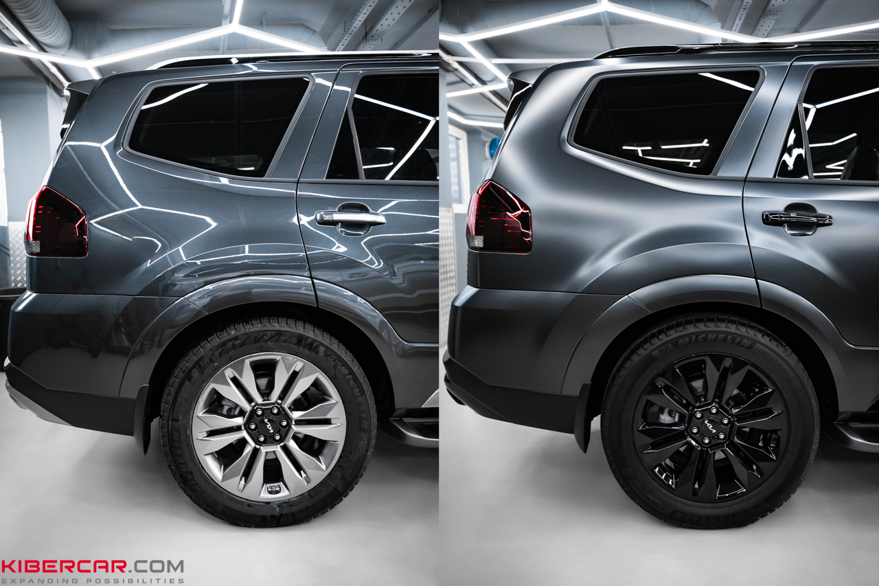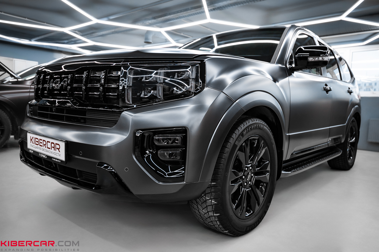 Недавно в наш детейлинг-центр поступил автомобиль Kia Mohave, чтобы пройти полный цикл обновления внешнего вида. После выполнения антихрома и покраски дисков в элегантный черный цвет, следующим этапом стала оклейка в матовый полиуретан. Данный вид плёнки не только подчеркнёт статусность автомобиля, но и обеспечит надёжную защиту лакокрасочного покрытия.