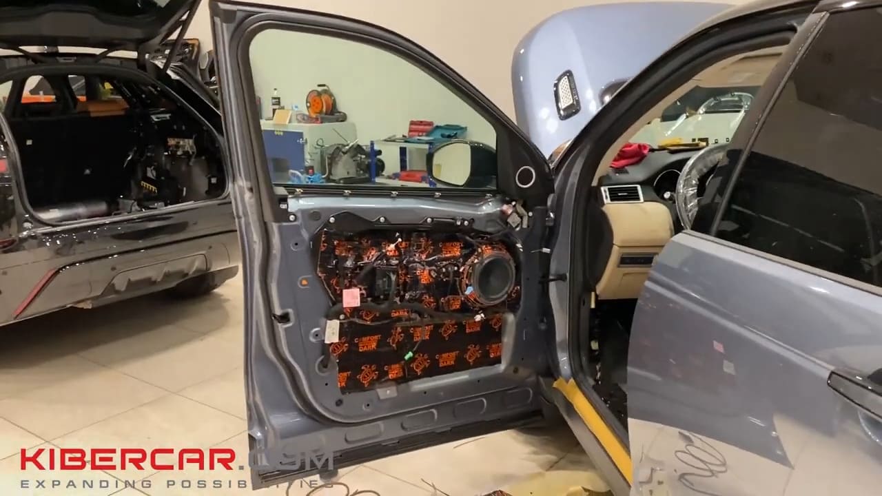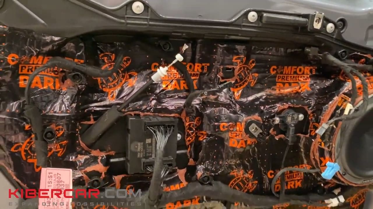 В первую очередь мастера разобрали дверные карты и уложили изоляционный материал. Теперь в салоне будет тише и теплее, а акустика станет в разы качественнее.
