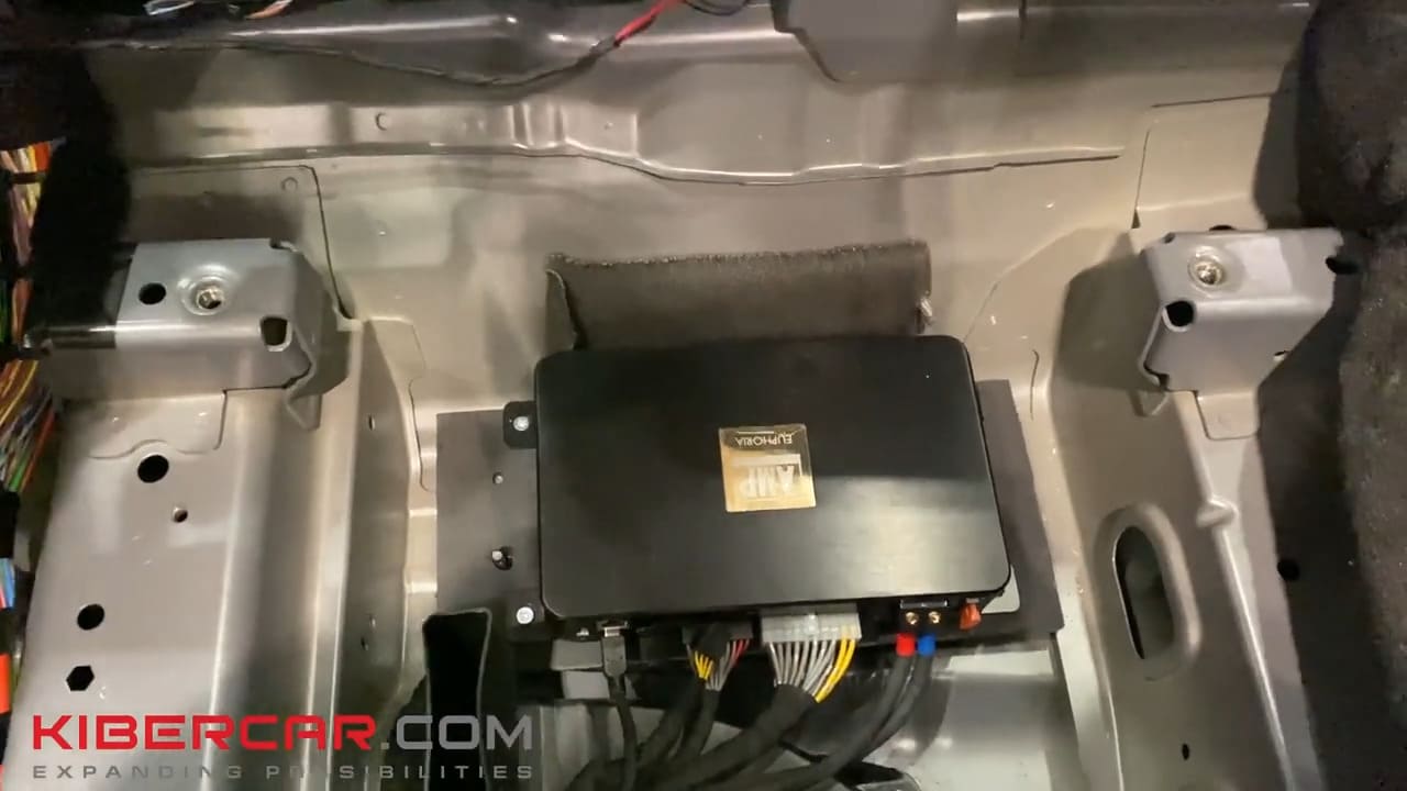 Штатный сабвуфер в пластмассовом коробе абсолютно не давал такого звучания, как хотелось бы. Кроме того, из-за места его установки говорить о нормальной работе не приходилось. Весь бас уходил на улицу. Теперь управлять новой аудиосистемой будет 8-канальный усилитель AMP.