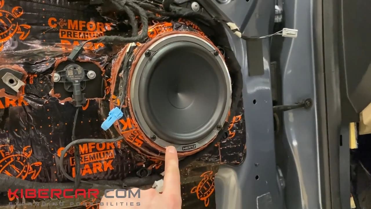 Далее мы заменили штатные колонки на динамики Hertz, а также установили новые твитеры на водительской и пассажирской дверях.