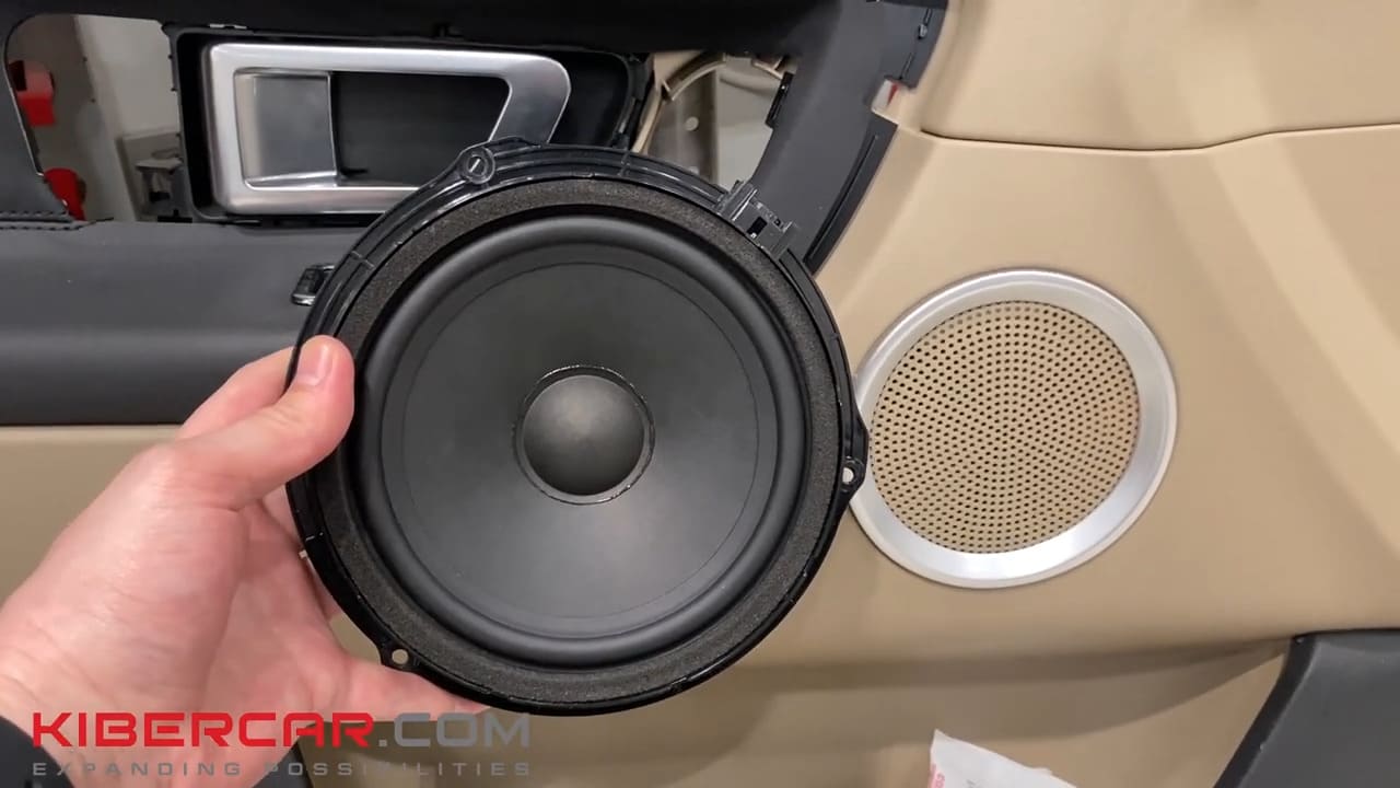 Мастера установили металлические динамики, которые гораздо крепче штатных. Кроме того, они идеально подходят по размеру отверстий, что позволяет исключить потери звука.