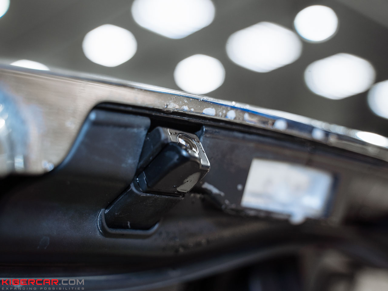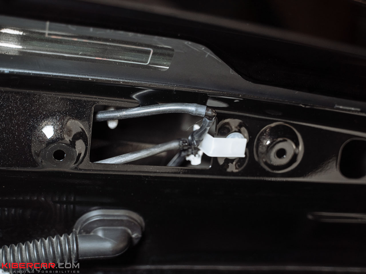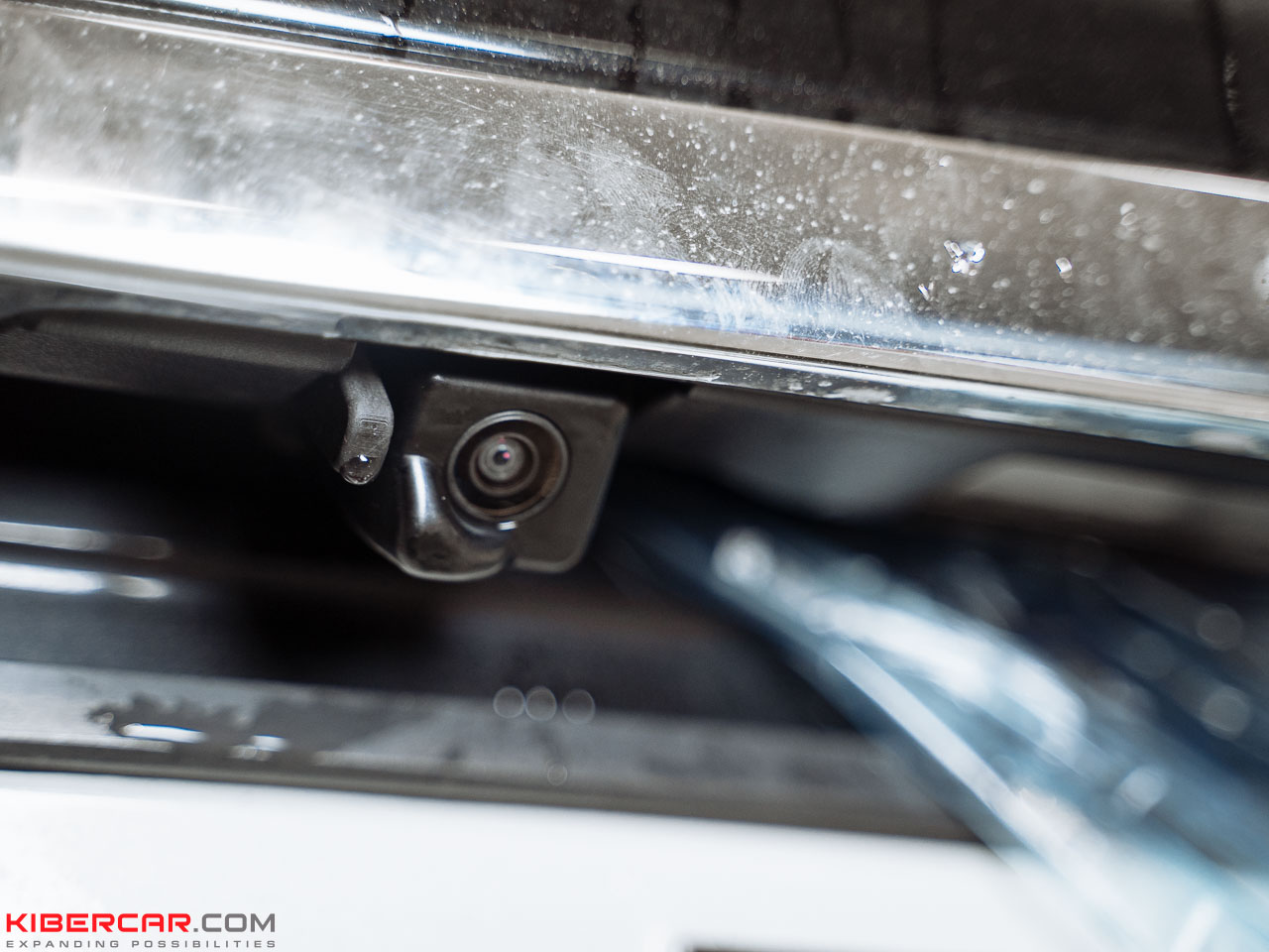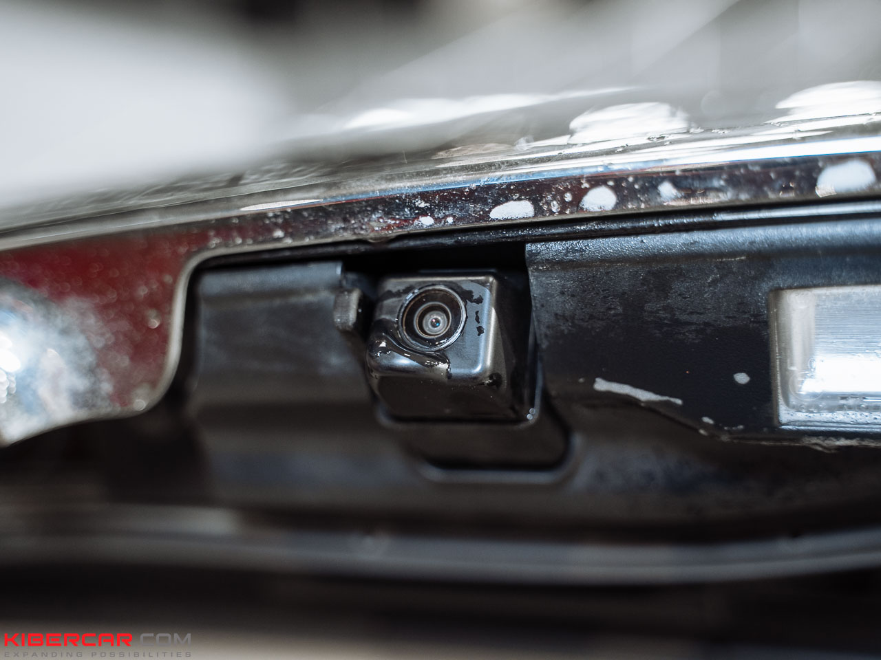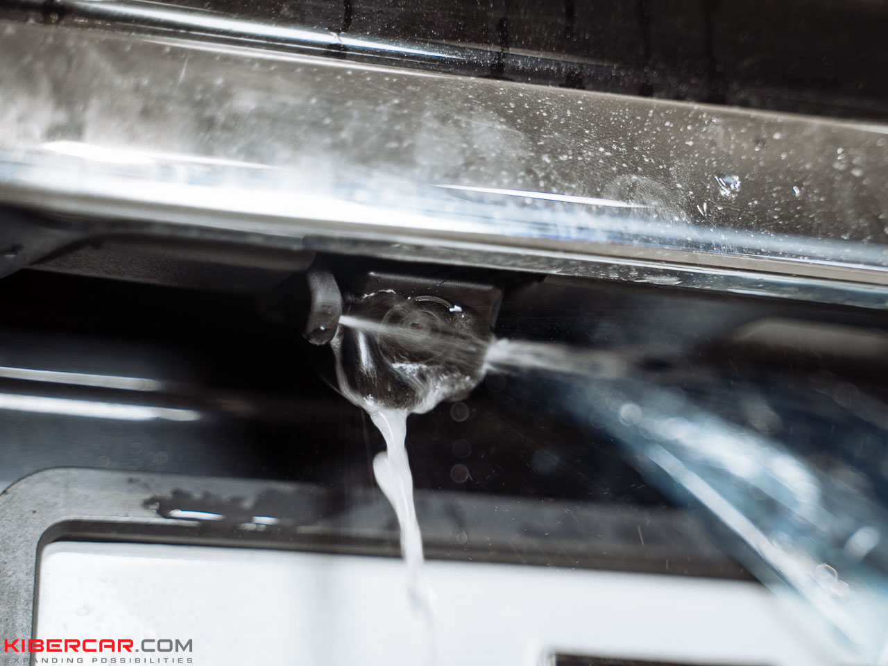 На этой модели автомобиля камера располагается над номерным знаком. Наша команда заменила штатный корпус на аналогичный с форсункой и подключила морозостойкий шланг к системе омывания заднего стекла.