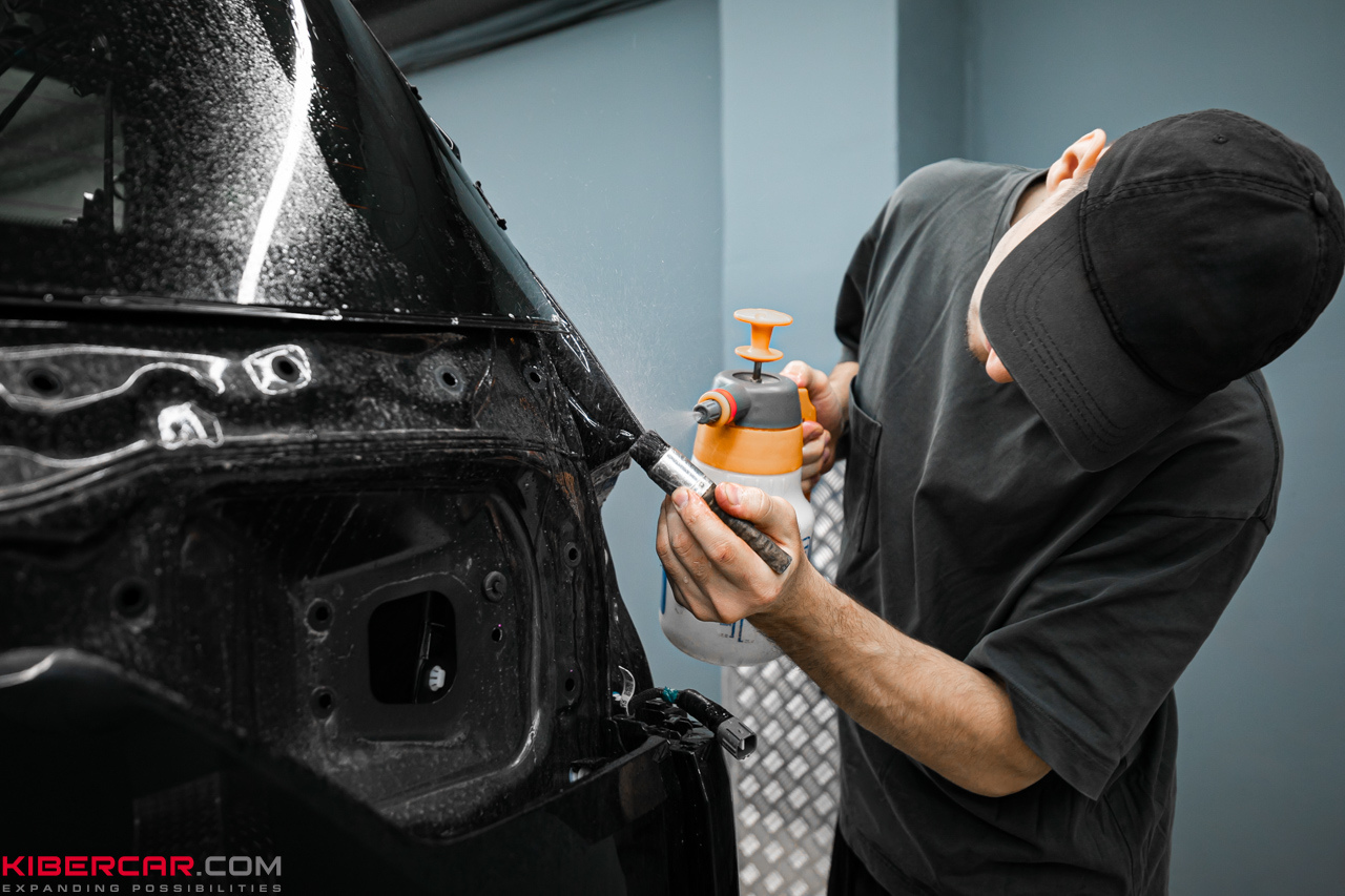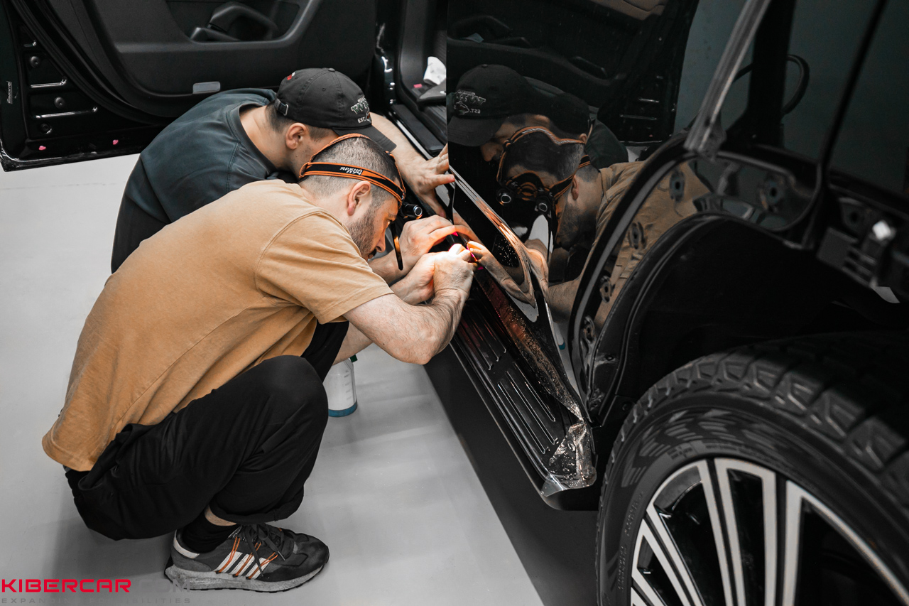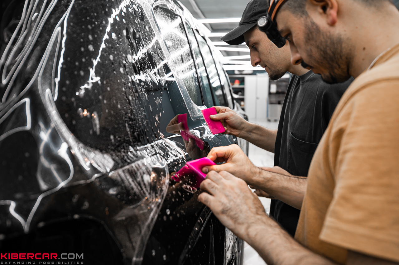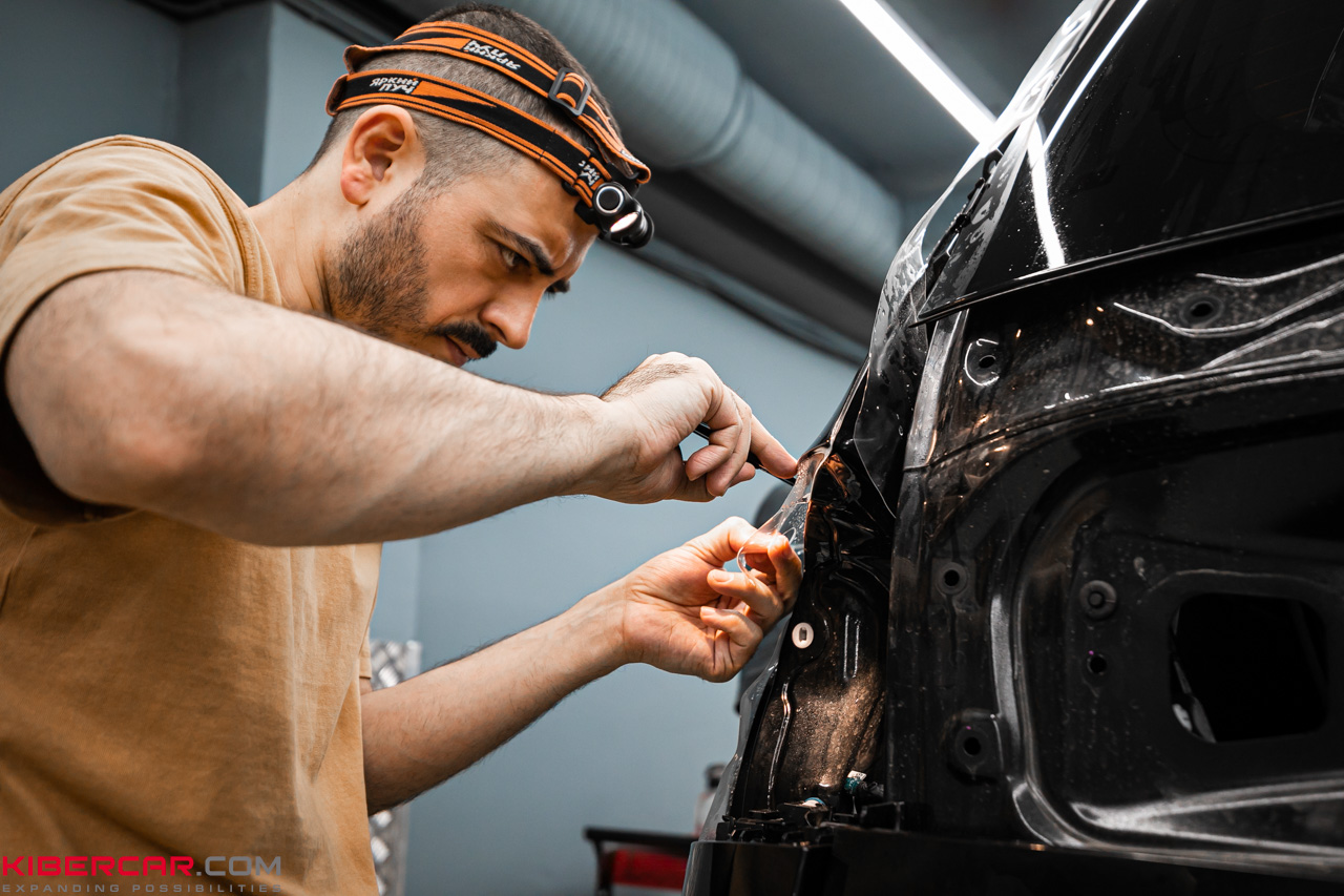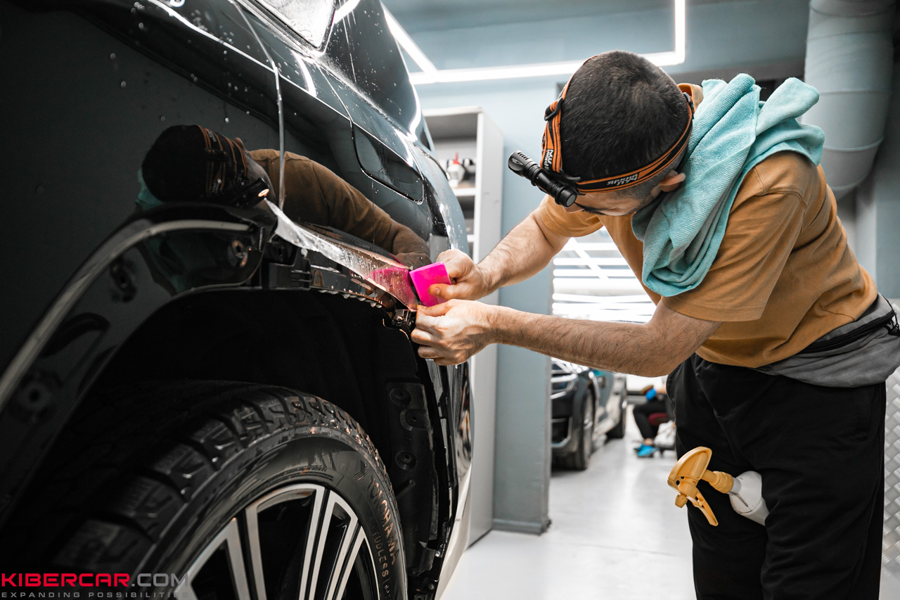 Во время работы наши мастера не отступают от технологии оклейки, особое внимание уделяя зонам риска. Предварительный детейлинг очищает поверхность от любых загрязнений или жирных пятен, чтобы обеспечить максимальное прилегание, при котором не образуются складки или воздушные пузырьки. Такой подход гарантирует продолжительный срок службы защитного покрытия.