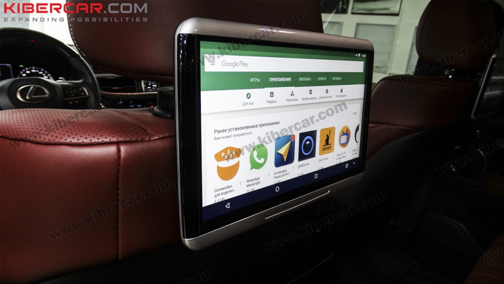 Второе, что сделали наши мастера – это установка универсальных мониторов в подголовник. Они могут работать автономно, так как имеют собственный Android аналогичной версии, а также на них вольно вывести изображение с головного устройства. И теперь вся семья будет увлечена просмотром любимого шоу!