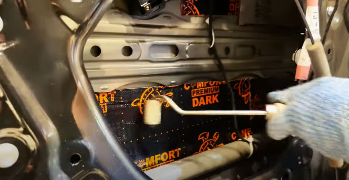 На следующем этапе дооснащения мы установили бесштыревые доводчики дверей. Для этого мастера разобрали дверь (что необходимо и для дальнейшей шумоизоляции) и поменяли штатные замки на замки с автоматическим доводчиком от SmartGear. По конструктиву они идеально совместимы с дверями Lexus RX 2018 года, так что никакие дополнительные крепления или отверстия не понадобились. Теперь за плотное закрывание салона будет отвечать современная система – достаточно подтолкнуть дверь, и она притянется до упора.