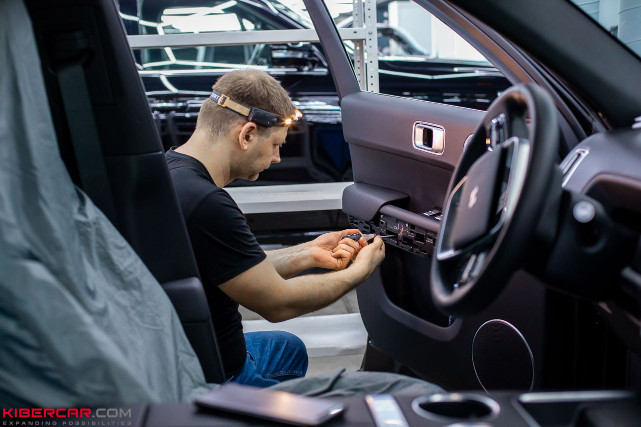 Для проведения тюнинга мастера демонтируют старые стекла и устанавливают новые, которые– точно соответствуют штатным по размерам. Эти стеклопакеты двойные: между стеклами пространство заполнено слоем полимера, который меняет цвет, получив долю электрического напряжения. Чтобы электротонировка начала работать, специалисты подключают два дополнительных блока – определения включения зажигания и управления новой опцией.