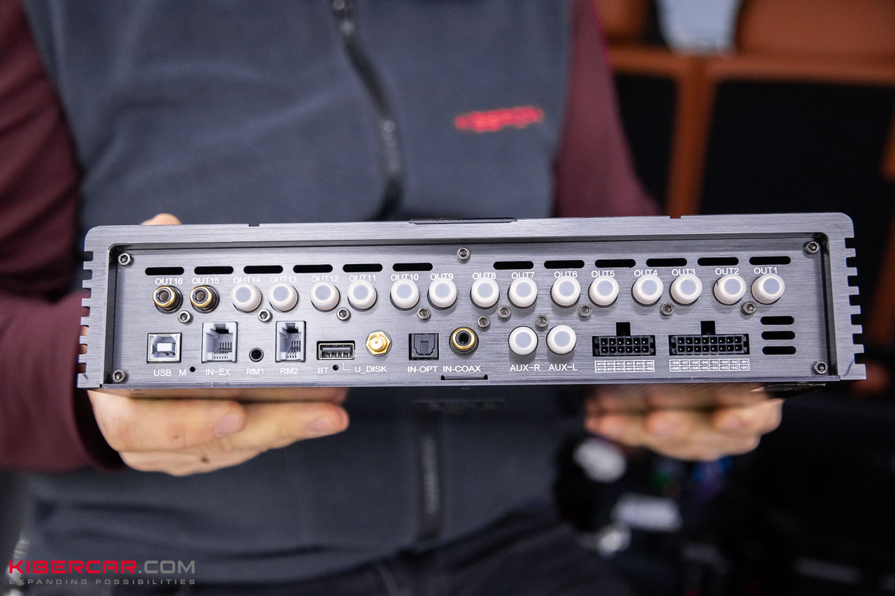 По умолчанию в этом Lixiang L7 была установлена штатная аудиосистема с двумя десятками компонентов. Чтобы использовать все ее возможности, пришлось подобрать процессорный усилитель минимум на 16 каналов. В других проектах мы бы остановились на популярных моделях от Helix или других европейских брендов, которые целиком отвечают поставленной задаче. Но в нашем случае бюджет был ограничен, поэтому пришлось поискать кое-то подешевле.