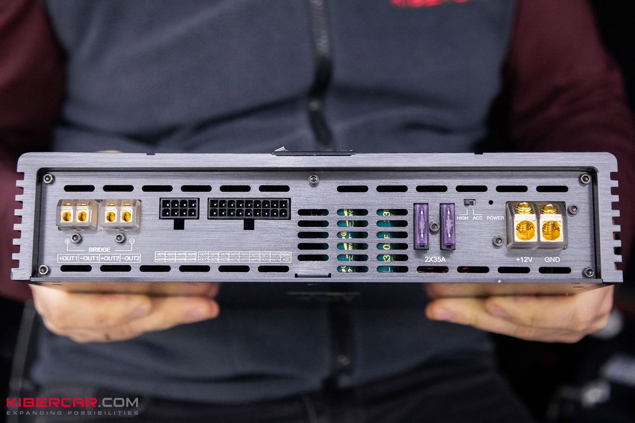 Два последних канала можно было бы объединить мостом и использовать для подключения сабвуфера, но мы отказались от этой идеи. Все каналы задействовали для подключения штатной акустики, а для сабвуфера подготовили отдельный моноблок и подключили к линейным выходам.