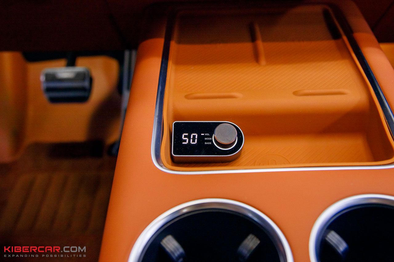 Для управления источниками звука, переключения пресетов и регулировки громкости подобрали пульт. И подключили по оптоволокну плеер, который сообщается со штатной магнитолой через приложение.