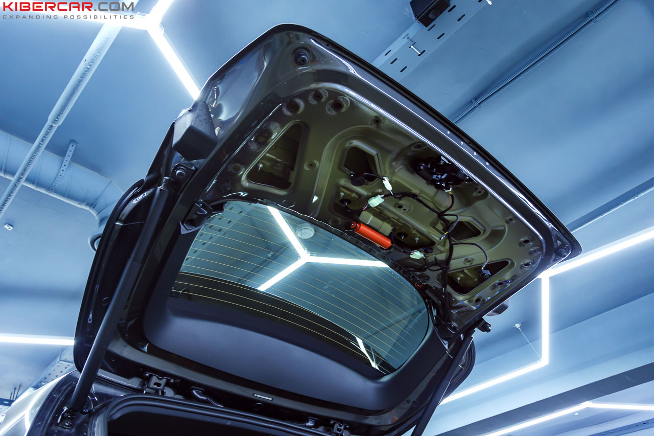 После этого мастера занялись шумоизоляцией капота и крышки багажника. На капоте нам хватило одного слоя Aerocell QP Genio: материал имеет сложную структуру, поэтому совмещает в себе несколько функций. На крышке багажника использовали тот же слой.