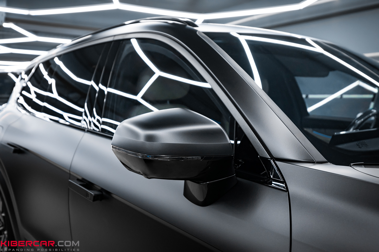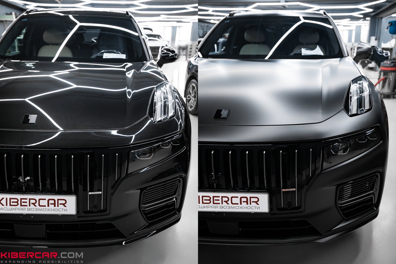 Владелец Lynk & Co 09 обратился в наш центр, чтобы оклеить автомобиль матовой пленкой. Такое покрытие может выполнять не только декоративную, но и защитную функцию. Оно снижает риск механических повреждений лакокрасочного покрытия – царапин, мелких сколов и вмятин.