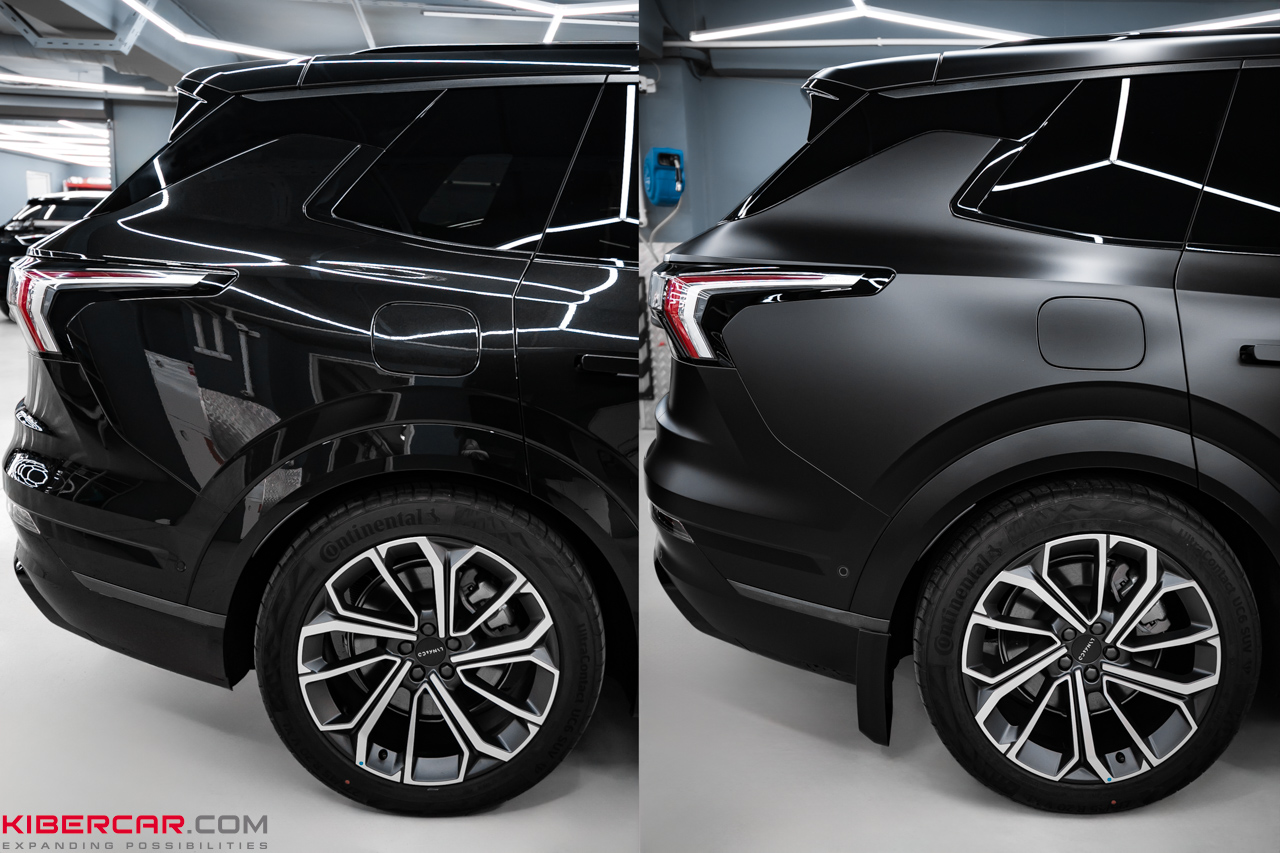 Решение: оклейка автомобиля матовой антигравийной пленкой из полиуретана.