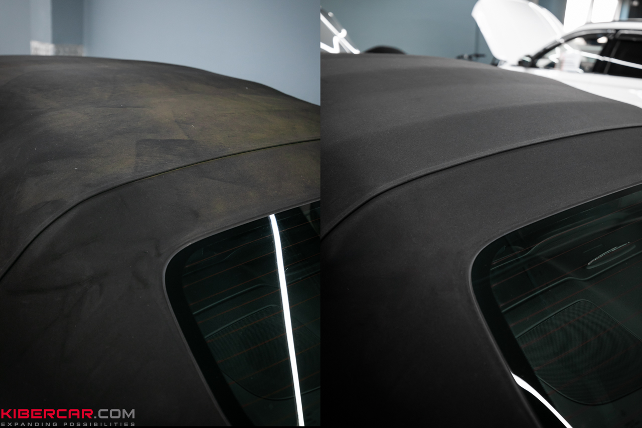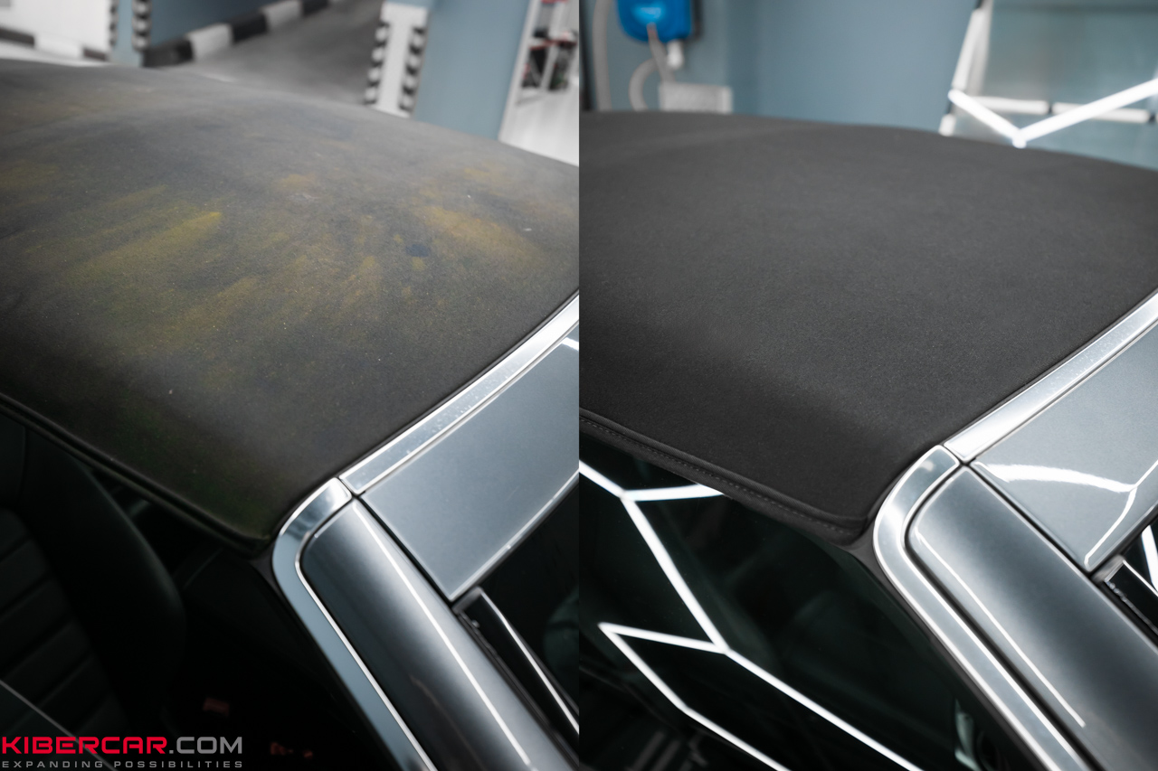 После химчистки крыша автомобиля выглядит как новая. Вы сами можете в этом убедиться, посмотрев видеоролик. Обратите внимание: несмотря на то, что поверхность темная, на материале нет ни разводов, ни белесого налета.
