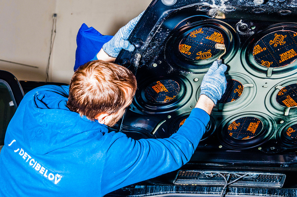 Чтобы добиться такого эффекта, специалисты нашей компании разработали индивидуальную технологическую карту работ и материалов. Мастера полностью разобрали салон авто, демонтируя сиденья и весь «обвес», включая торпеду, потолки и дверные карты. Мы уделяем максимум внимания шумоизоляции ключевых элементов.