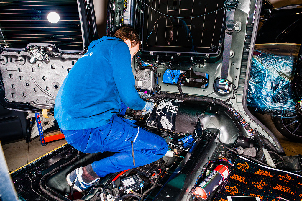 Премиальный автомобиль может стать еще совершеннее, если доверить его дооснащение сертифицированным мастерам. В этом убедился владелец Mercedes-Benz G-Класс, который заказал проведение полной шумоизоляции. Мы выполнили комплекс работ, и в итоге в машине стало тише приблизительно в 6 раз, исчезли посторонние шумы, гул от моторного отсека, скрипы пластиковых деталей и даже сквозняки. Находясь в салоне, можно спокойно разговаривать с собеседником на любой скорости. Кроме того, полная шумоизоляция усовершенствовала и звучание акустической системы авто: звук больше не будет рассеиваться, уходя наружу.