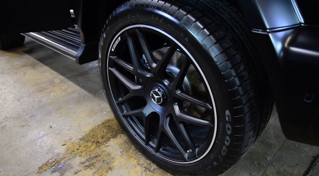 Решение: мы оклеили Mercedes-Benz G-Класса матовой полиуретановой пленкой, установили доводчики на двери и провели полную шумоизоляцию.