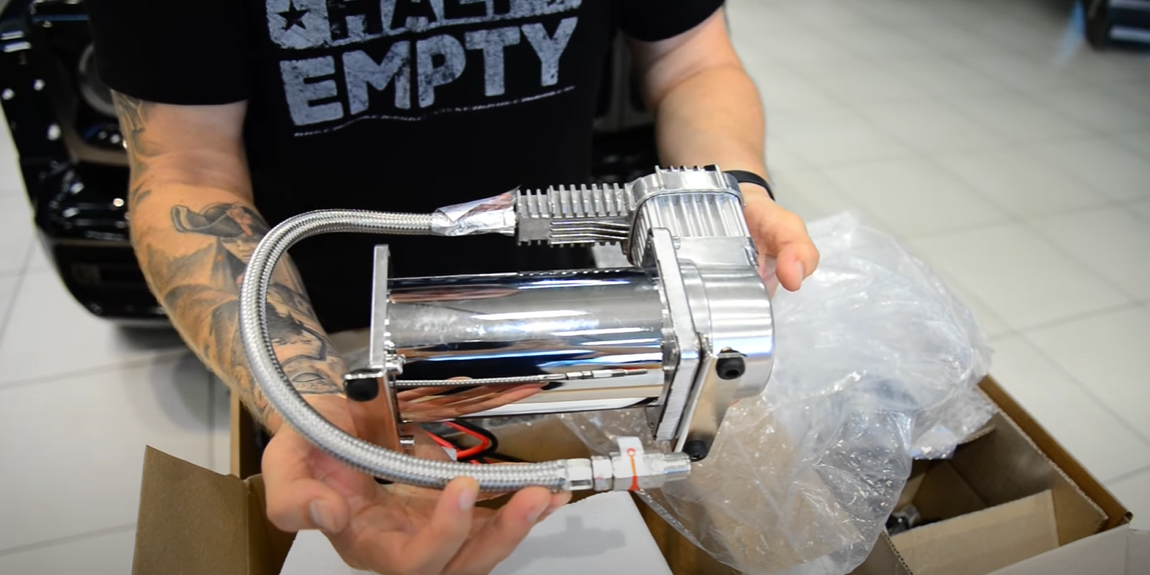 В комплект установки входят трехлитровый ресивер повышенной надежности, необходимые крепежные элементы, пистолет для подкачки колес, длинный шланг, итальянские фитинги, гудок и компрессор. У последнего существенная защита от влаги и пыли, соответствующая стандарту IP67. Это значит, что устройство не пострадает, даже если будет полностью погружено в воду.