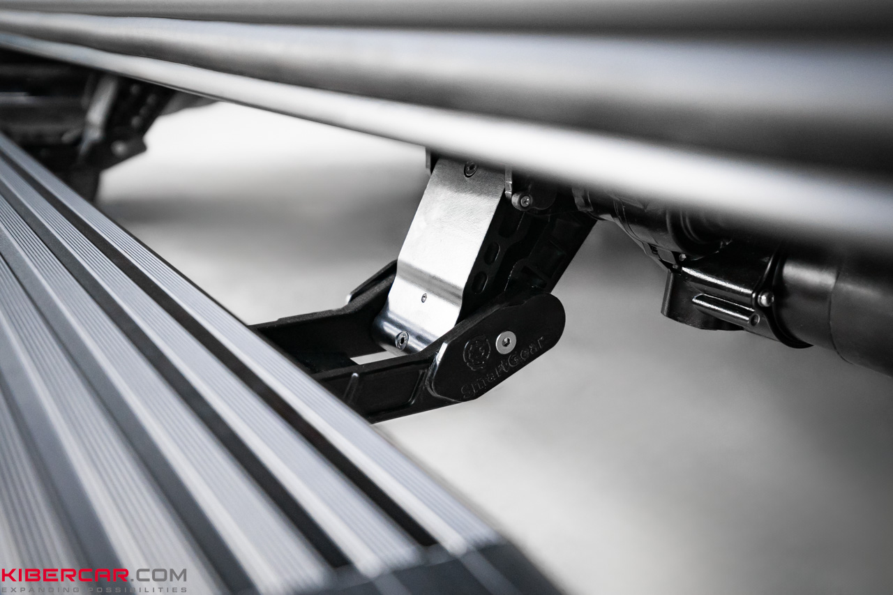 Для крепления порогов используются специальные кронштейны, которые устанавливаются в штатные места. Все открытые элементы защищаются колпачками, чтобы внутрь не попал песок, грязь, влага. Для активного кронштейна, который участвует в движении конструкции, использован мотор производства Южной Кореи – самый надежный из того, что есть на рынке.