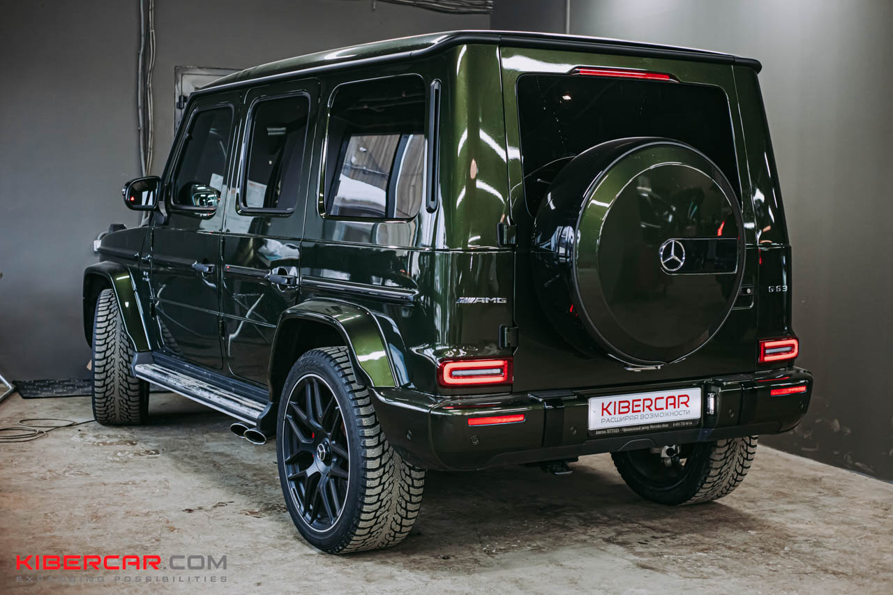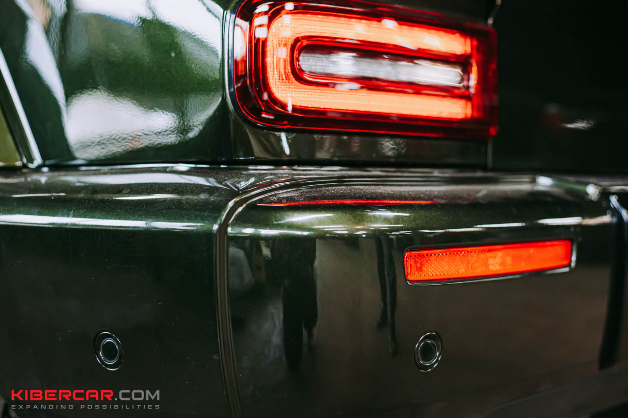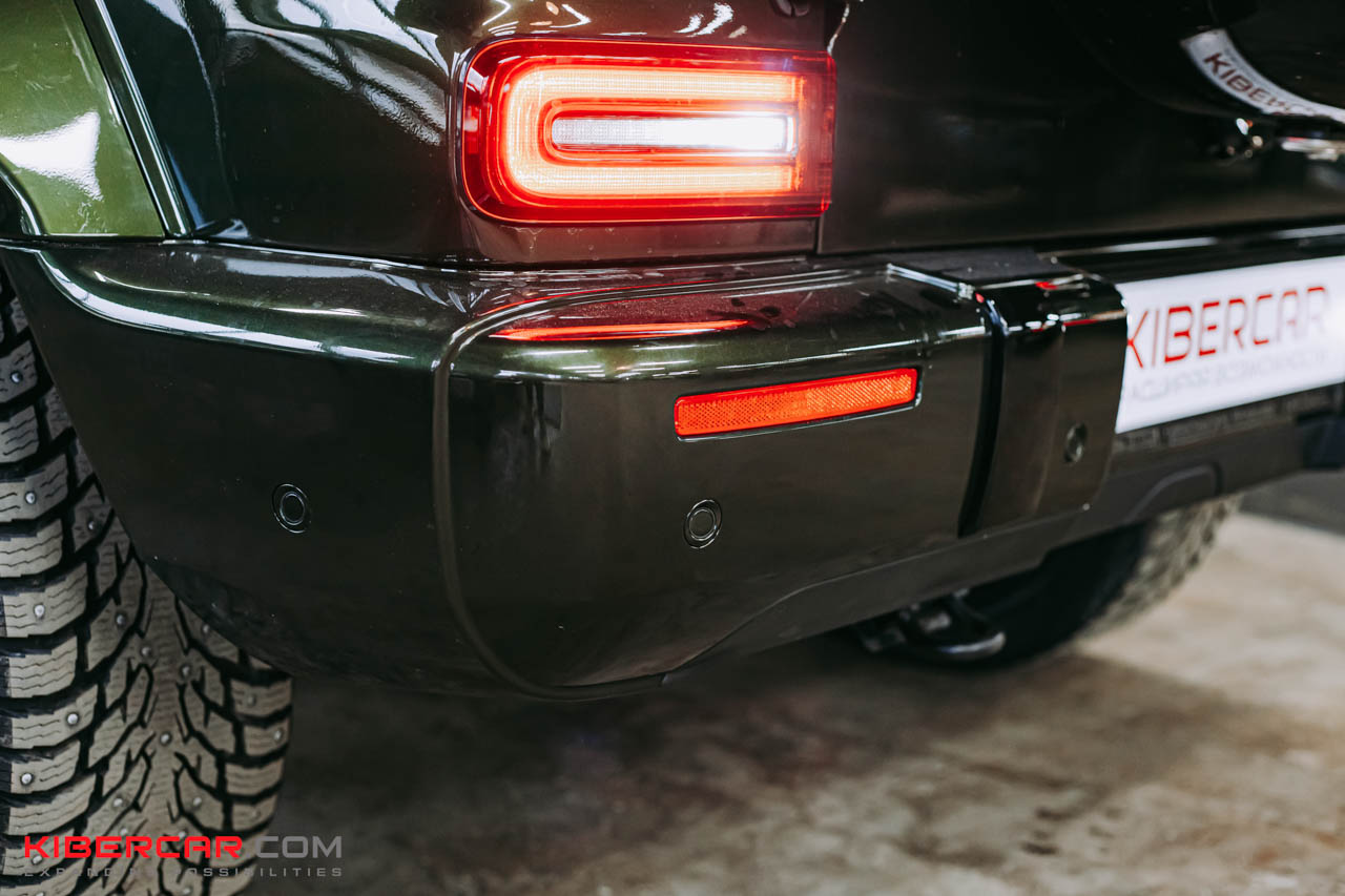 К тому же мы оснастили Гелендваген системой “Парктроник”. Это двенадцать высокочувствительных датчиков по периметру машины, которые оповещают водителя о любых препятствиях во время парковки. Расположены они по шесть штук сзади и спереди и окрашены в родной цвет, за счет чего идеально вписываются в экстерьер.