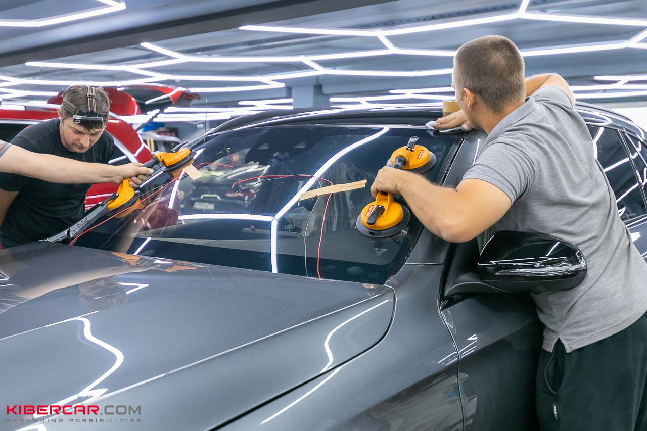 Для установки электронной тонировки мы демонтировали штатное стекло, затем переклеили на стекло OnGlass уплотнители и все необходимые детали. После этого выполнили монтаж и оставили автомобиль на ночь, чтобы все детали прочно закрепились.