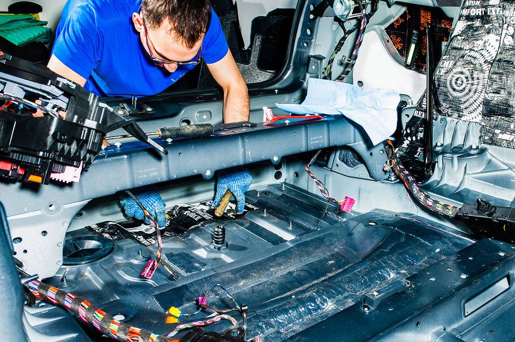 Для звукоизоляции пола и потолка салона проводится предварительный демонтаж всего навесного оборудования и элементов обшивки. По завершении мы возвращаем все на места, в результате после установки «шумки» салон выглядит так же, как и прежде. Благодаря профессионализму наших мастеров и ответственному подходу к каждому этапу работы, гарантии дилера сохраняются в полном объеме.