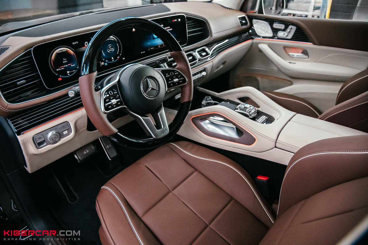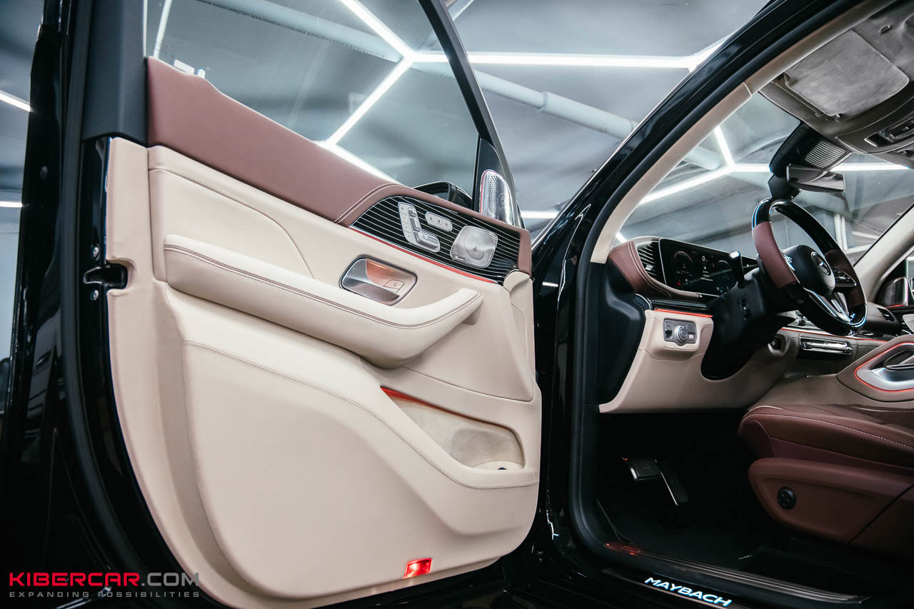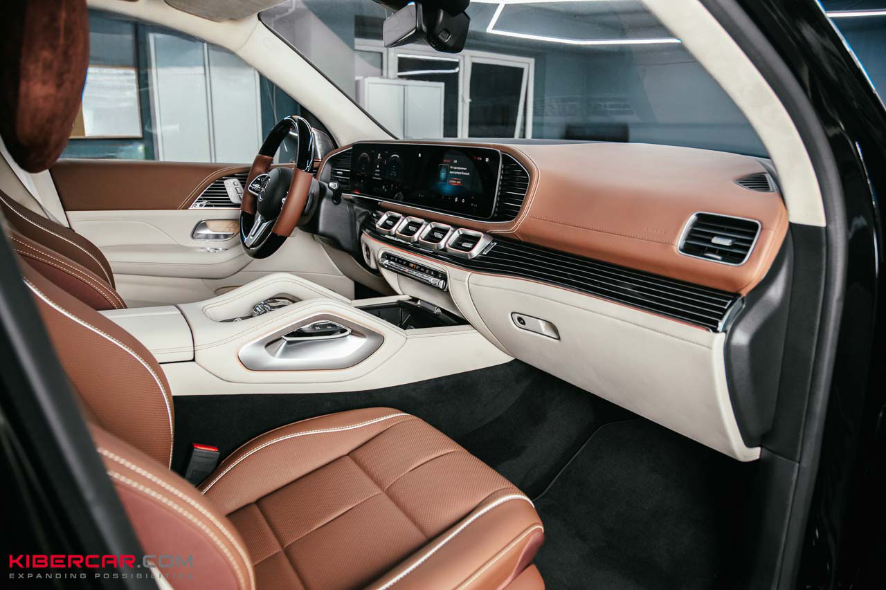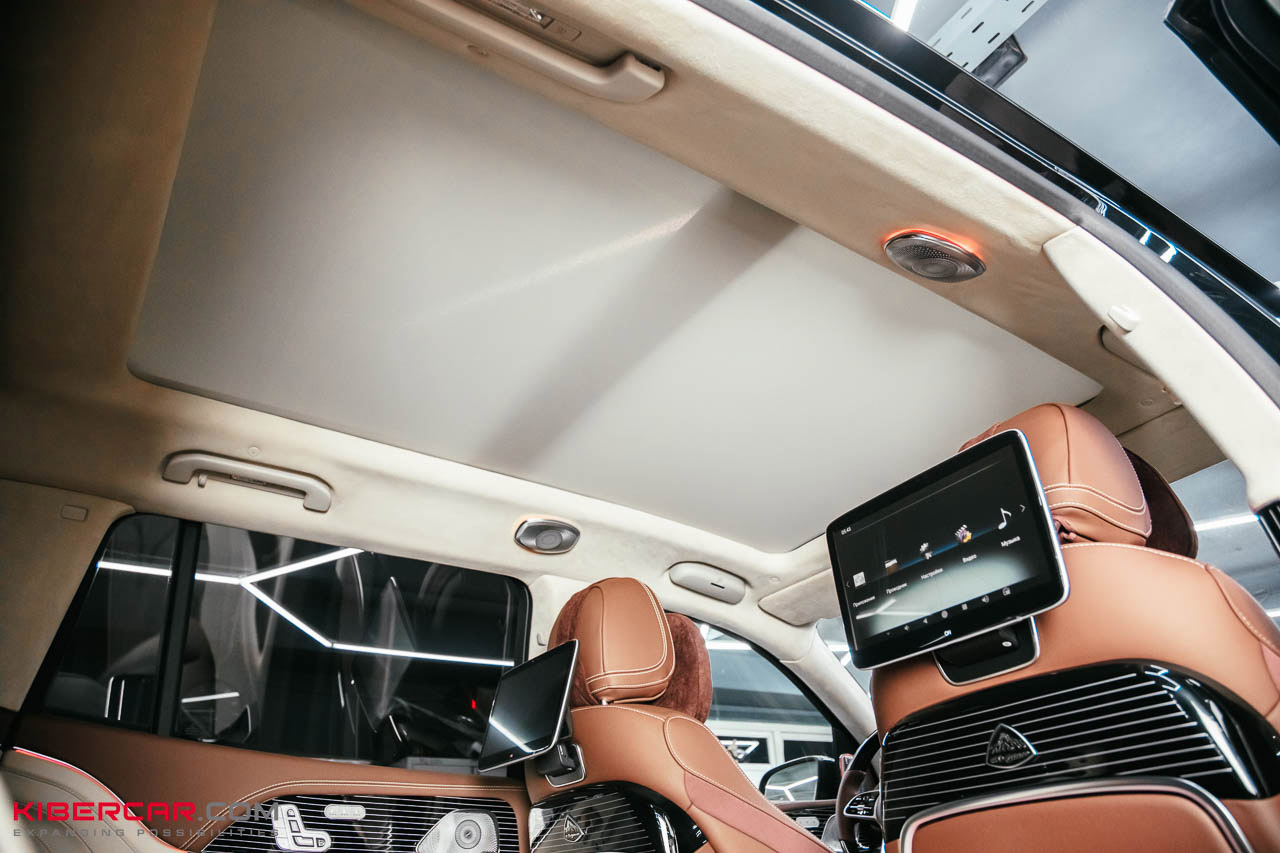Также добавили ряд элементов, которые есть в Mercedes-Benz Maybach, но отсутствуют в Mercedes-Benz GLS: дополнительные кнопки управления, шильдики с фирменной надписью, длинную центральную торпеду. После дооснащения водитель получил возможность управлять мультимедийным блоком при помощи планшета.