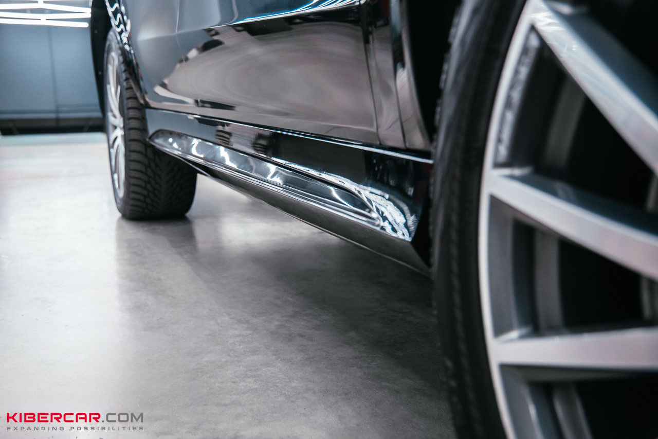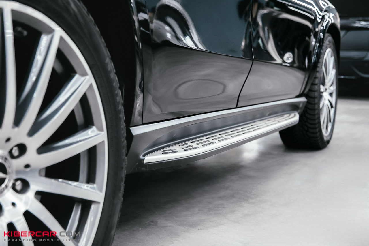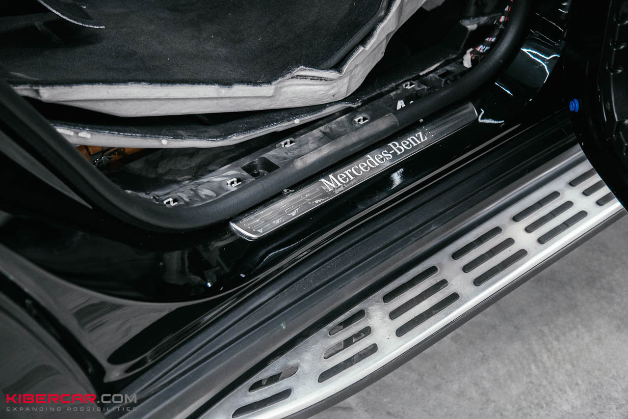 Чтобы забираться внутрь было удобнее, установили электрические выдвижные пороги. Они широкие, как на Maybach, и органично вписываются в комплектацию.