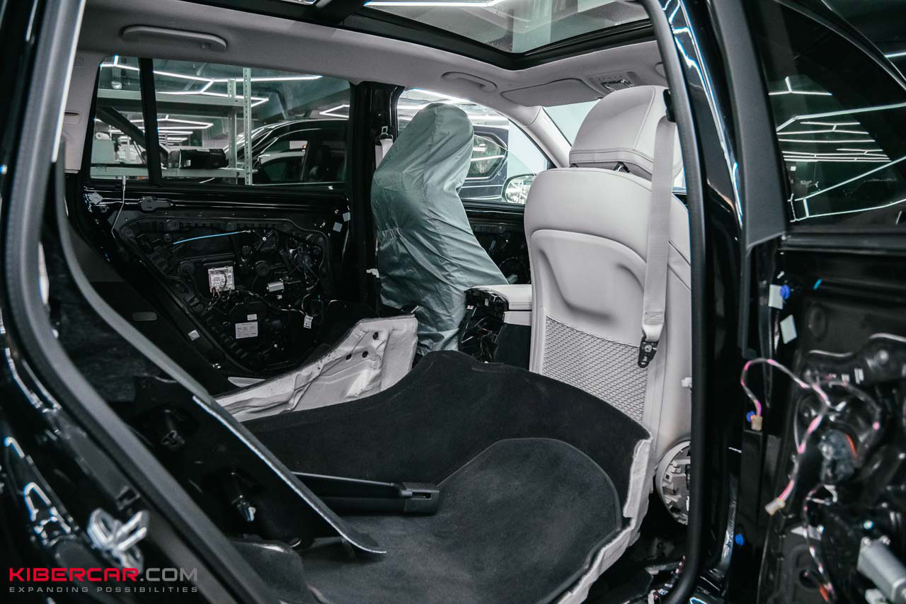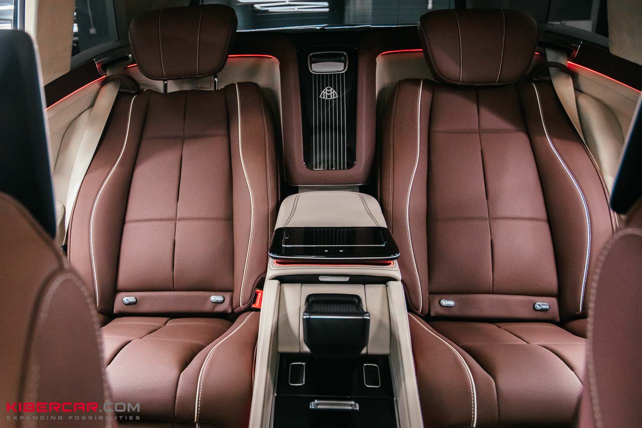Сначала заменили «юбки» на бампере, боковые спойлеры и передний бампер. В салоне убрали один ряд сидений, и установили капитанские кресла вместе с каркасом. Провели модернизацию акустики и установили дополнительную пару динамиков из комплектации Mercedes-Benz Maybach. Если понадобится, автозвук можно будет улучшить дополнительно по индивидуальному проекту, за отдельную плату.