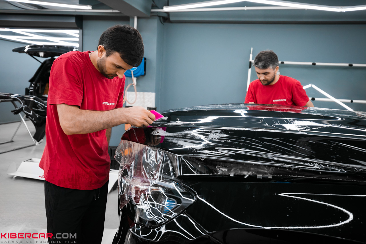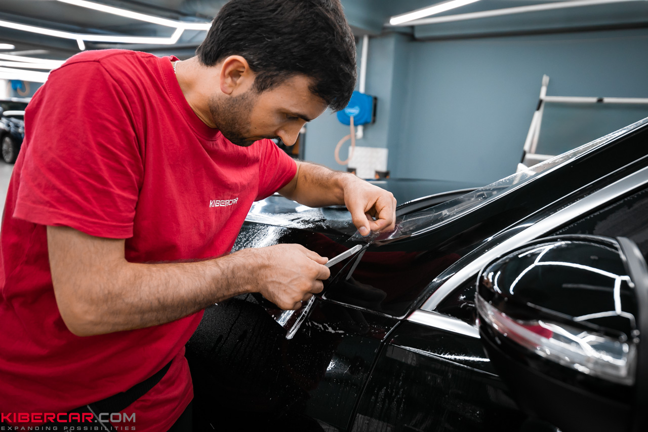 Защитная пленка бывает двух типов – виниловая и полиуретановая. Первый вариант чаще используют для декоративных целей, второй – для защиты лакокрасочного покрытия. Полиуретановая пленка стоит дороже, но служит в несколько раз дольше, поэтому наш заказчик выбрал именно ее.